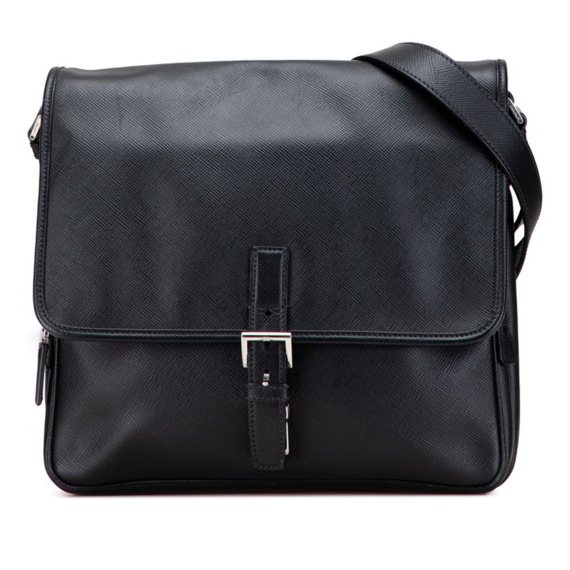 Prada Triangle Logo Plate Crossbody Shoulder Bag in Black Saffiano Leather for Women