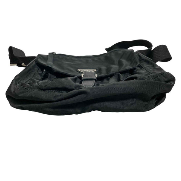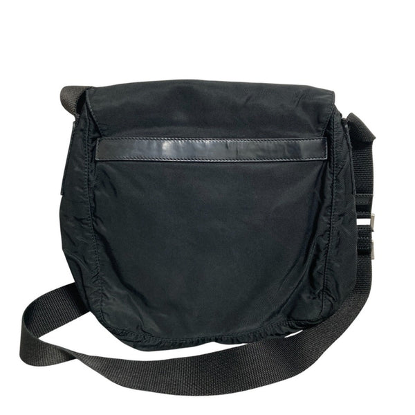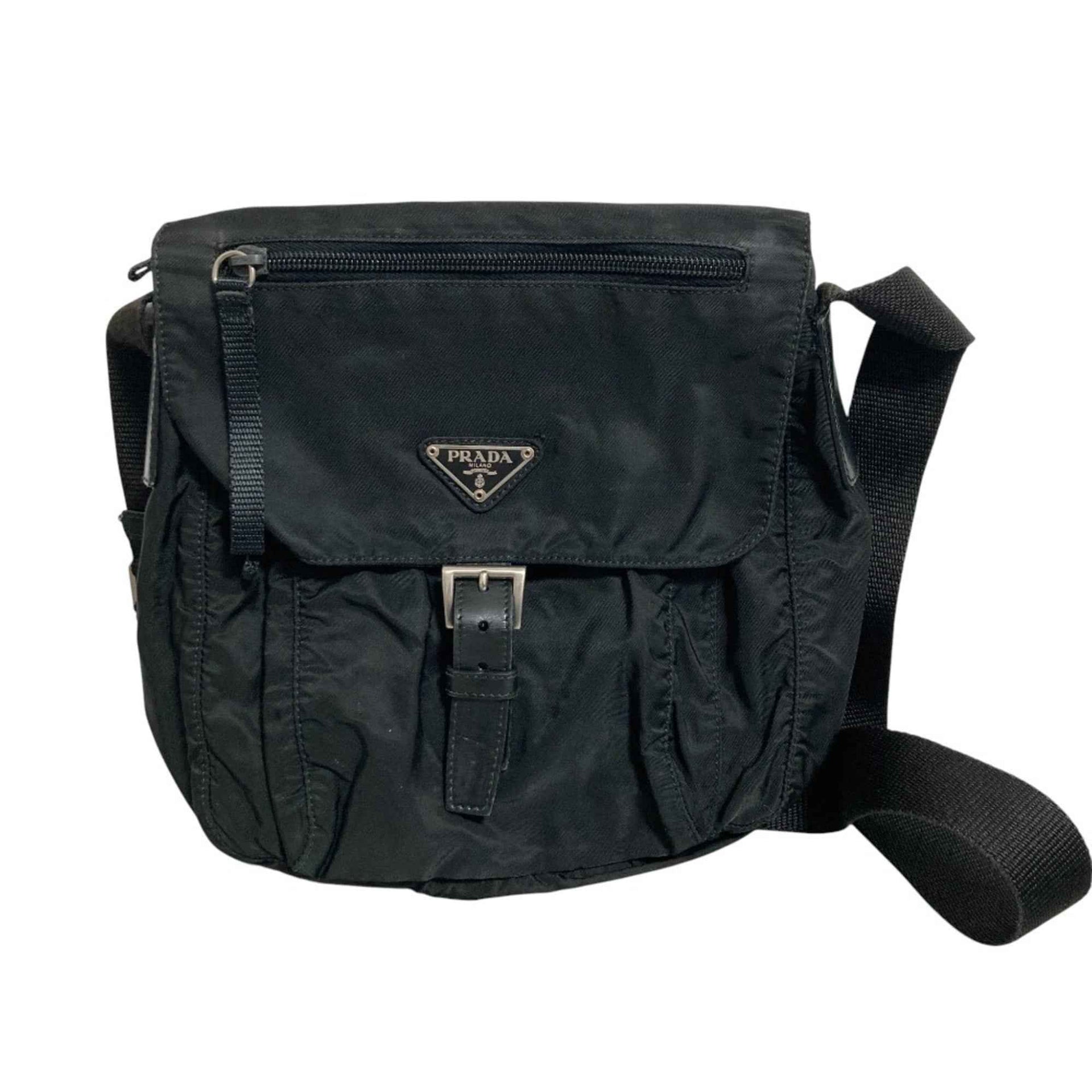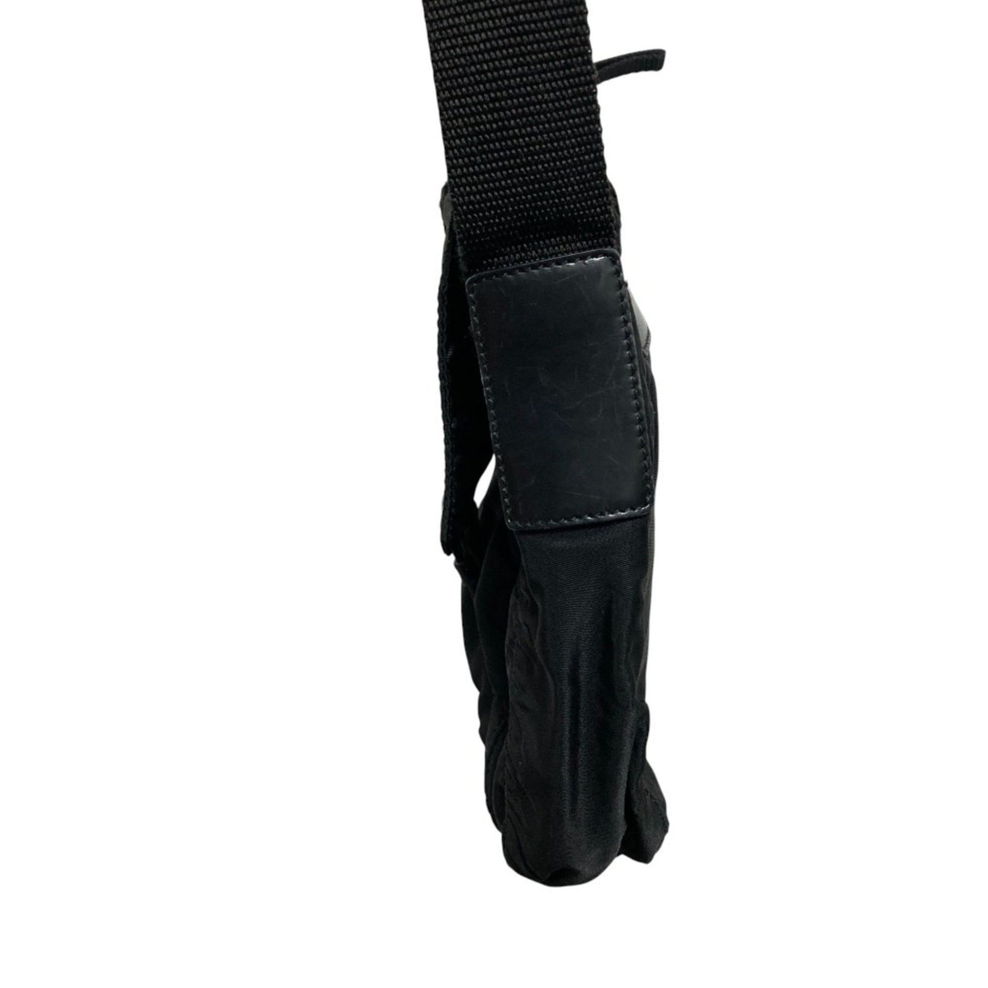 PRADA Triangle Logo Plate Nylon Shoulder Bag, Black, Women\'s, Lux, Pre-owned Brands
