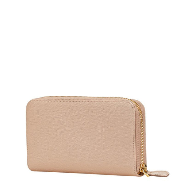 Prada Triangle Logo Plate Round Zip Long Wallet Beige Saffiano Leather Women\'s PRADA