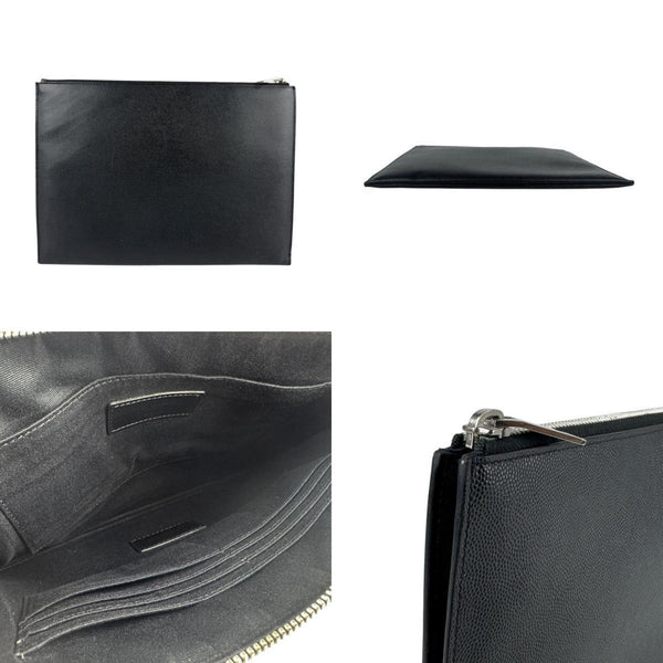 Saint Laurent Clutch Bag, Black Leather and Silver, Men\'s, Z6443