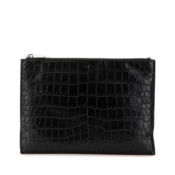 Saint Laurent Crocodile Embossed Clutch Bag/Second Bag 39729 Black Leather Men\'s SAINT LAURENT