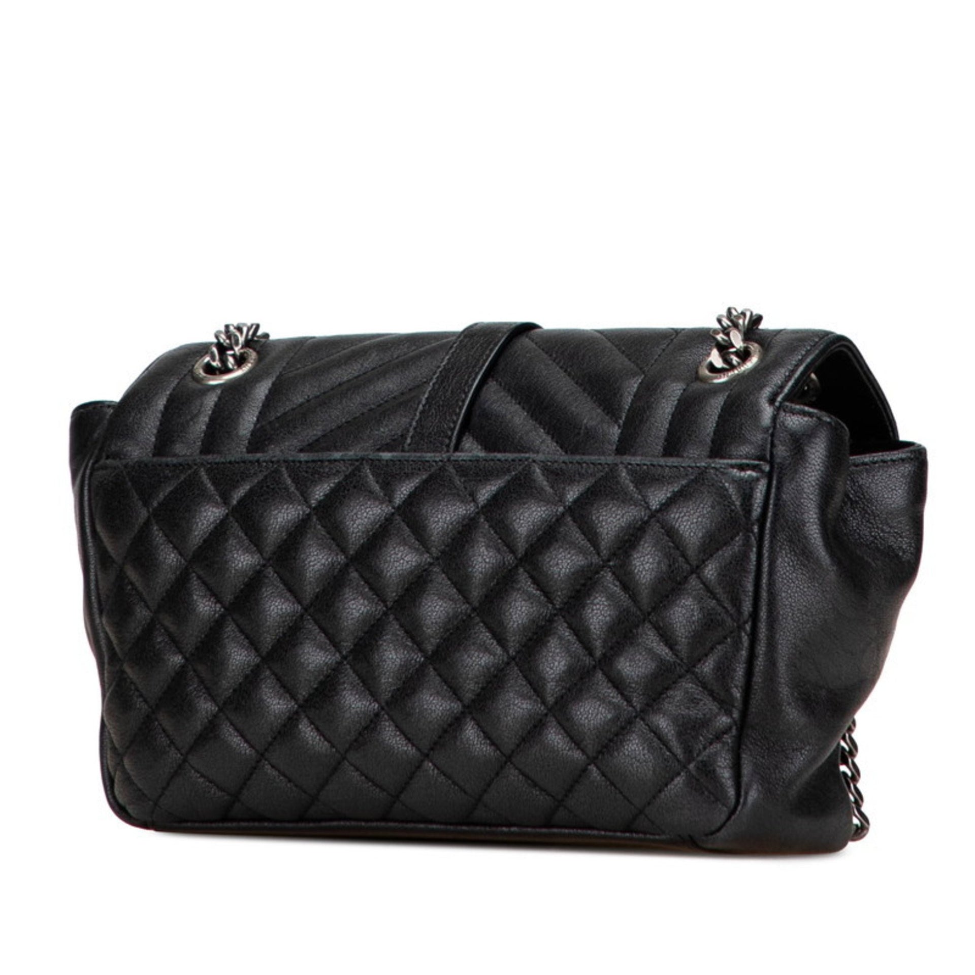 Saint Laurent Small Satchel with YSL Logo Chain Shoulder Bag, Black Leather, Women\'s, SAINT LAURENT