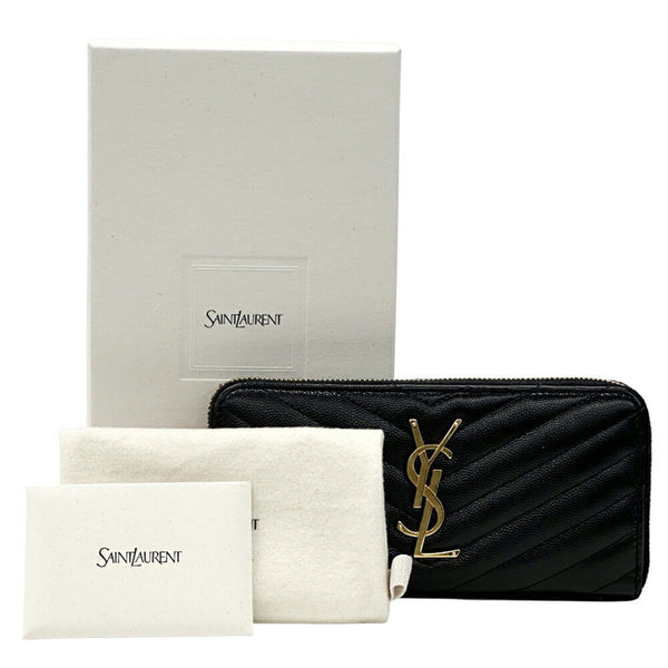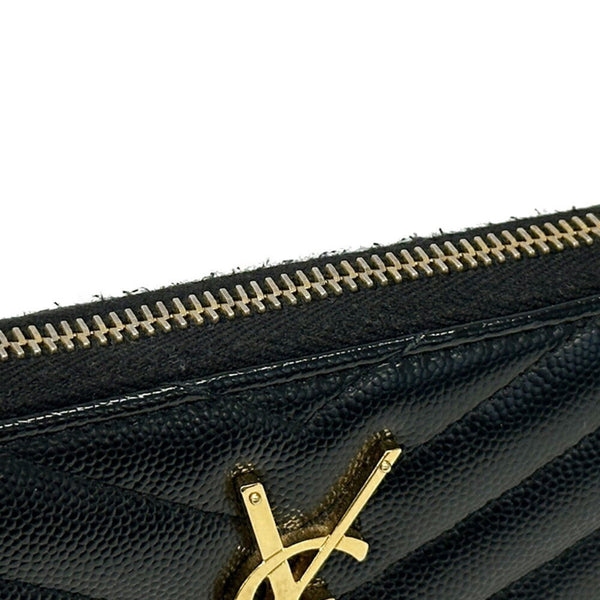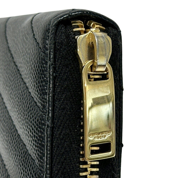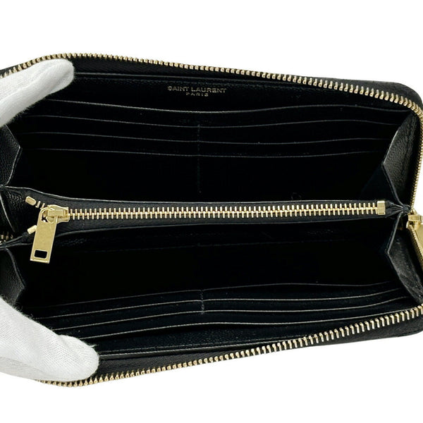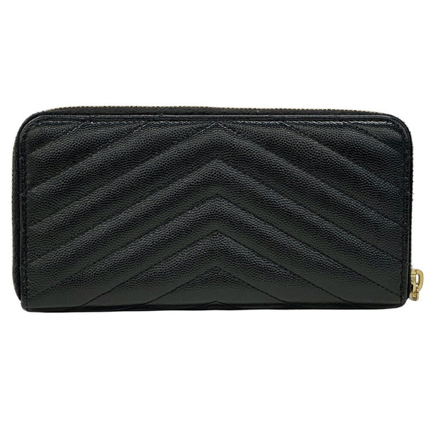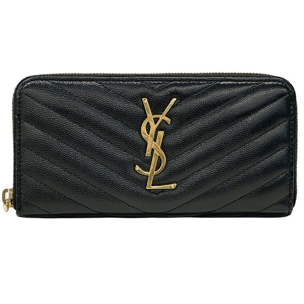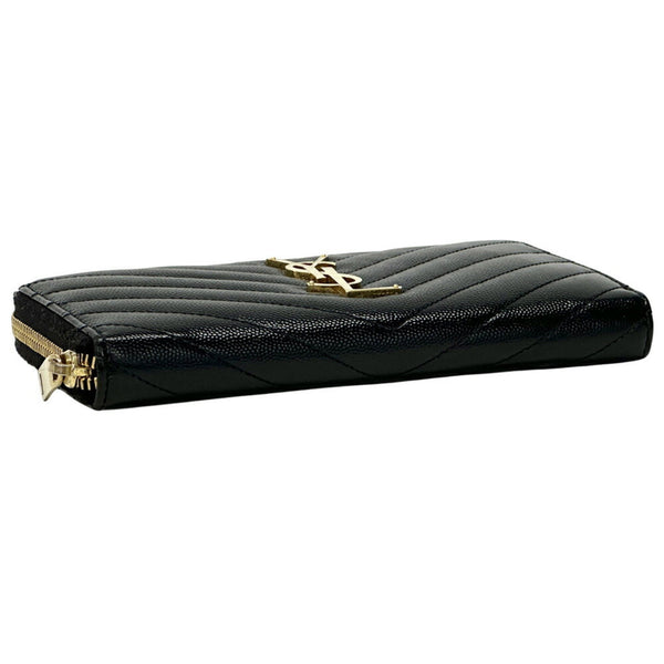 Saint Laurent Women's Long Wallet in Black and Gold with Quilted Leather