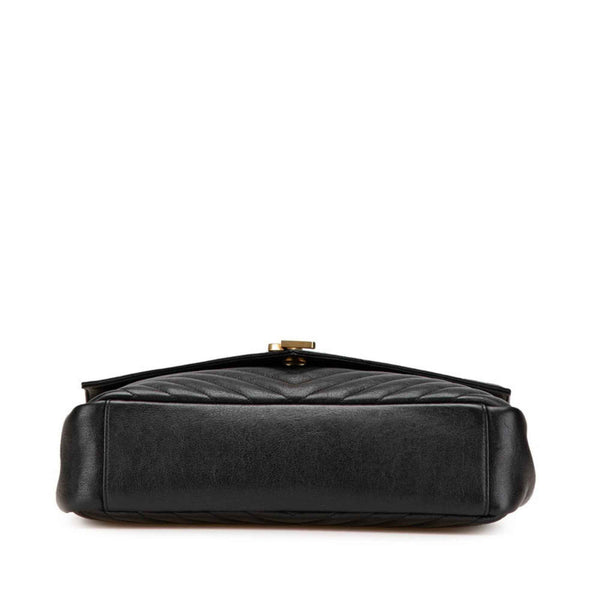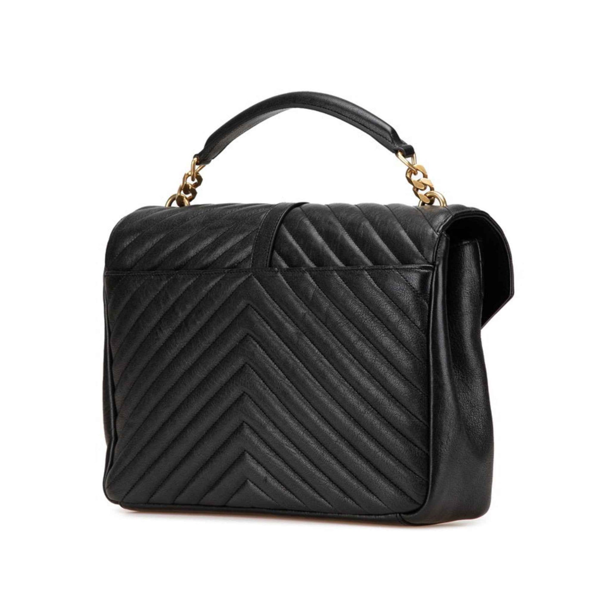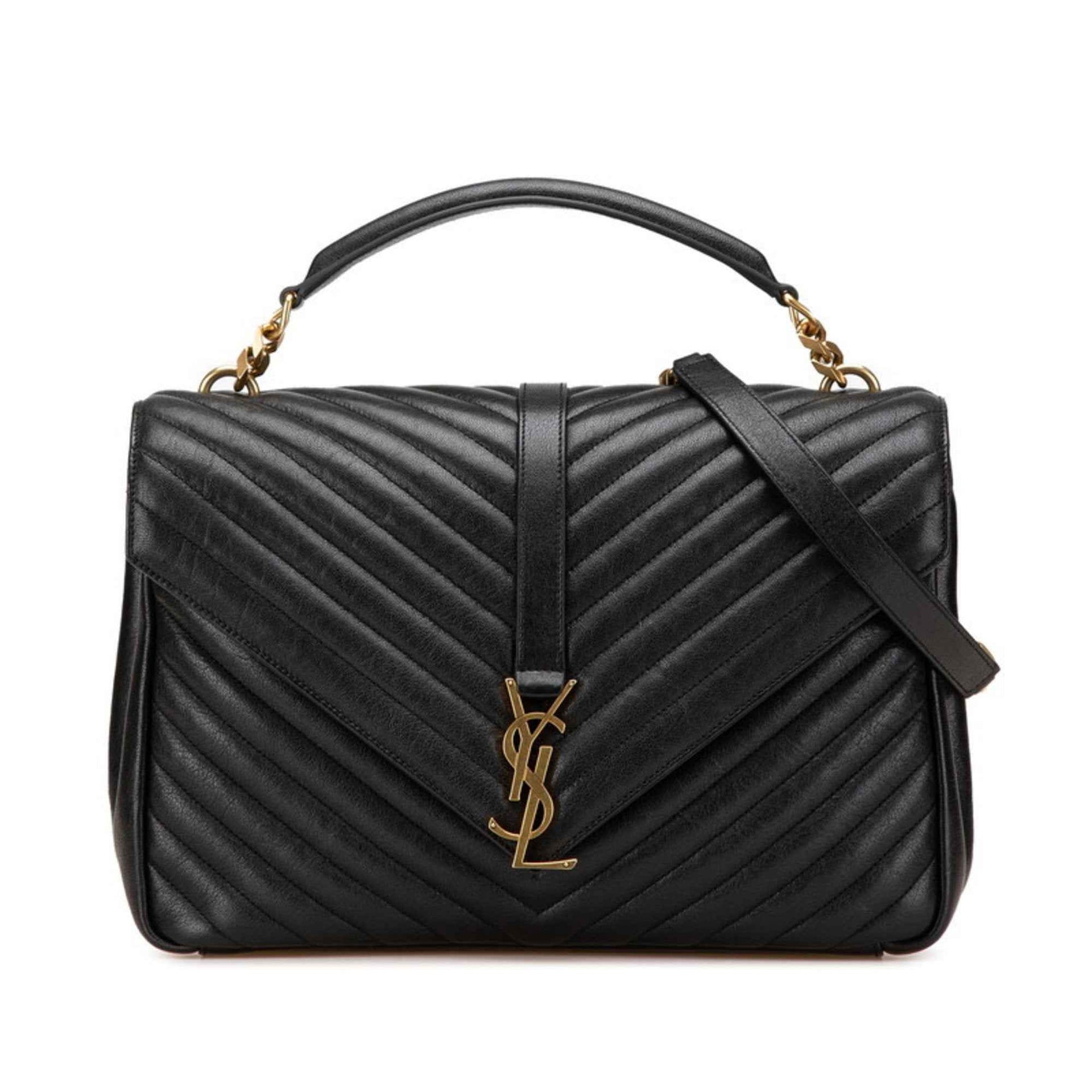 Saint Laurent YSL Monogram V-Stitch Handbag/Shoulder Bag, 2-Way, Black Leather, Women\'s, SAINT LAURENT