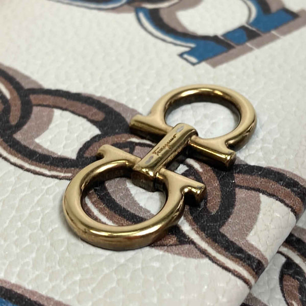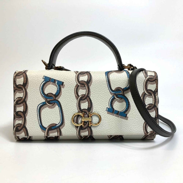 Salvatore Ferragamo 2WAY Shoulder Bag Hand Bag WhiteBased GoldHardware