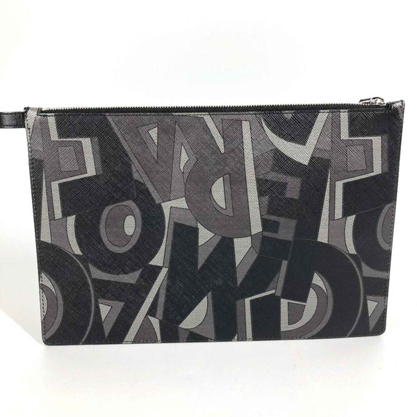 Salvatore Ferragamo all-over logo pouch/clutch bag in black leather for men