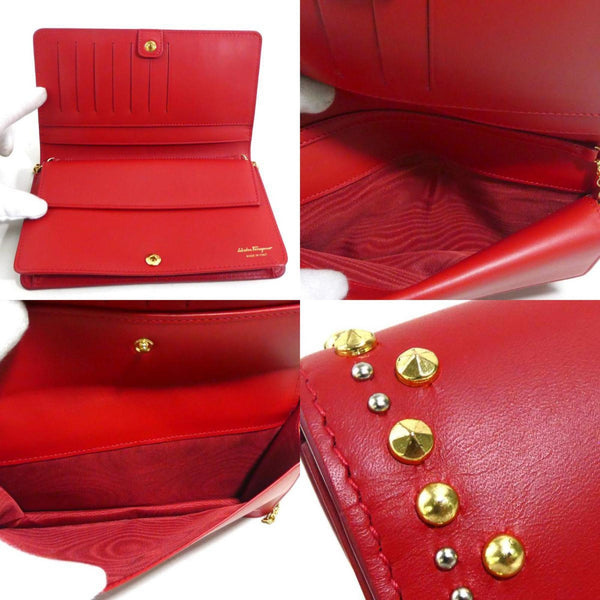 Salvatore Ferragamo Chain Wallet Vara Ribbon Leather Red Women\'s r10481a