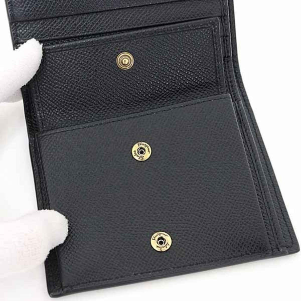 Salvatore Ferragamo Double Gancini Bifold Wallet Calfskin 22D780 726512 Black Unused