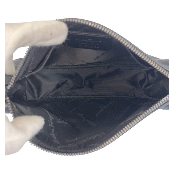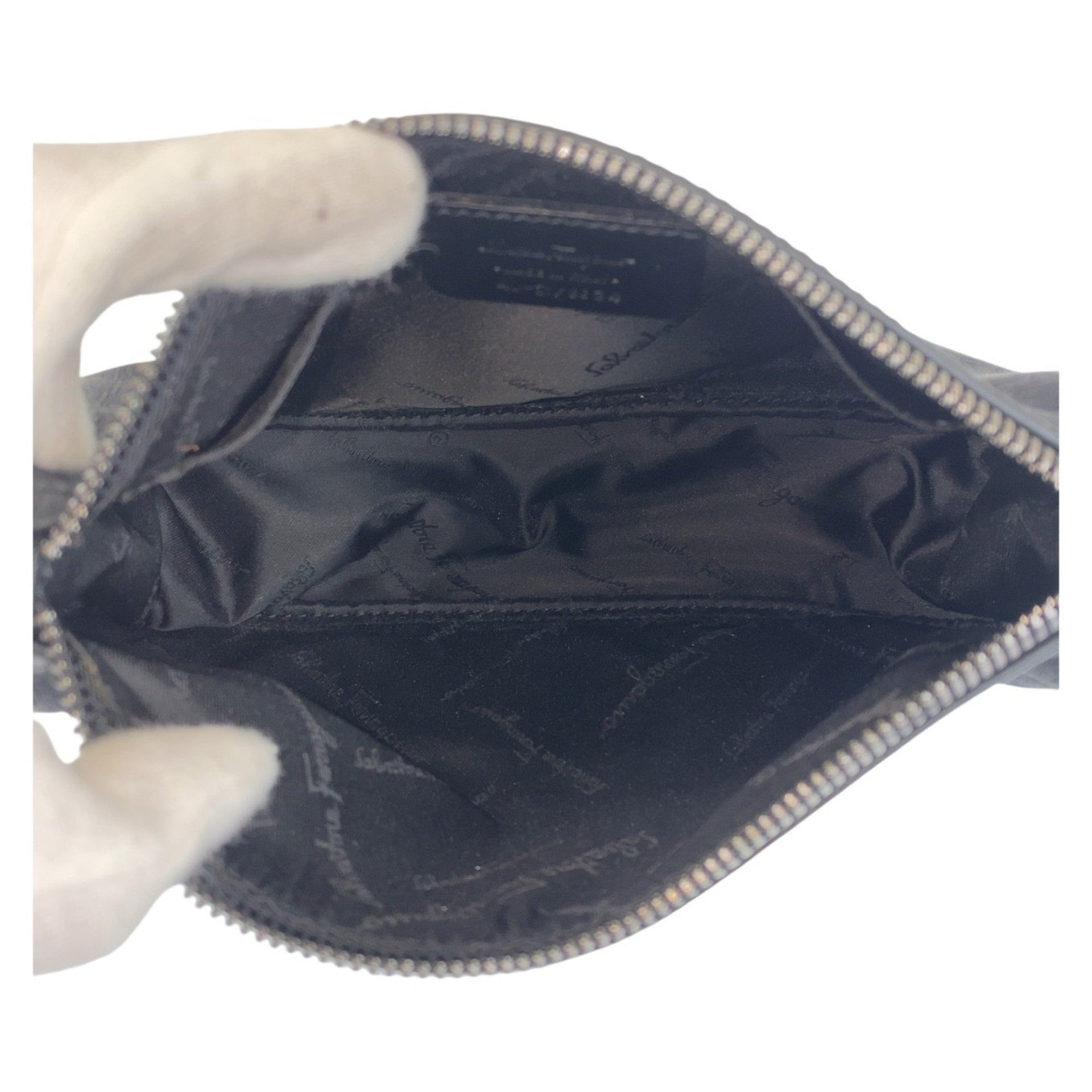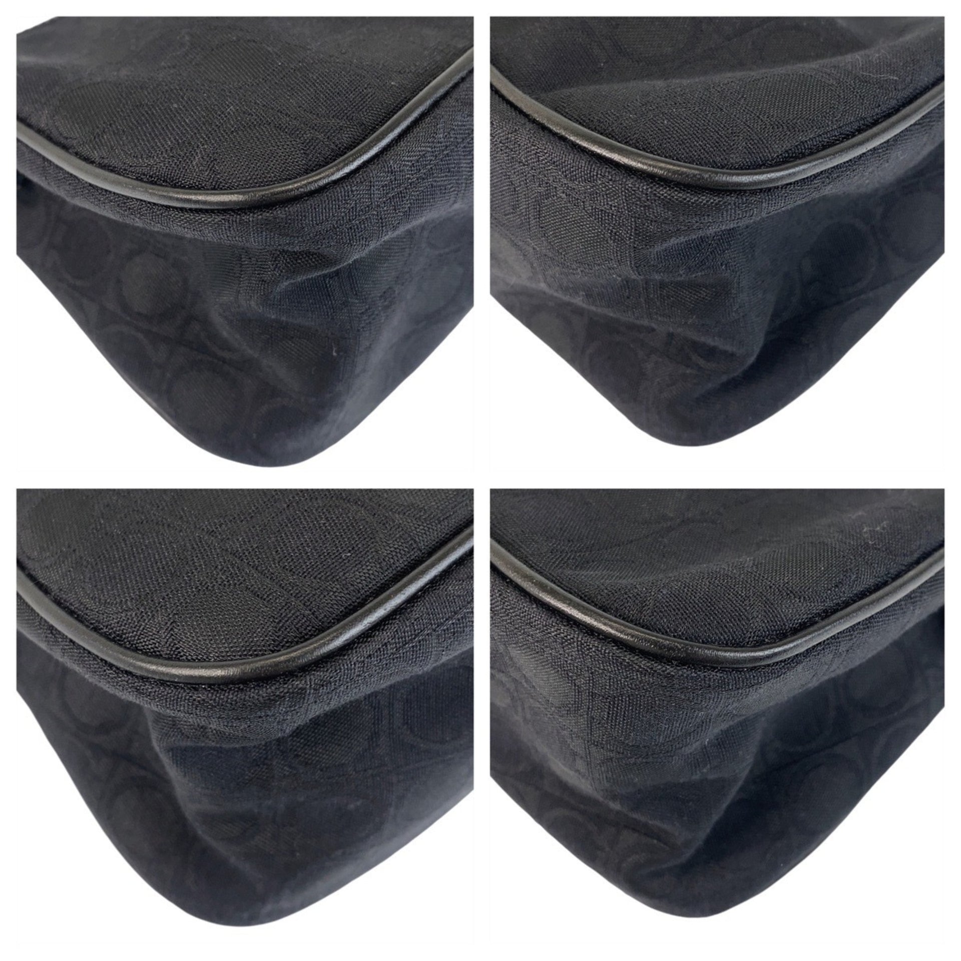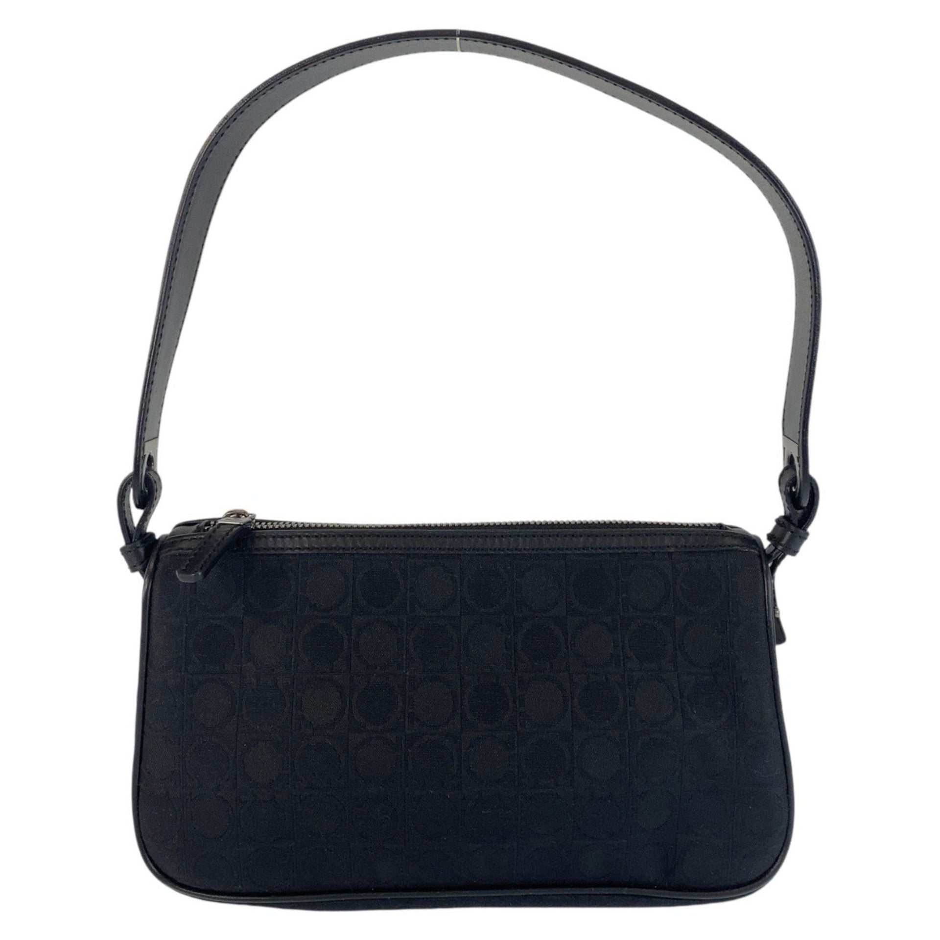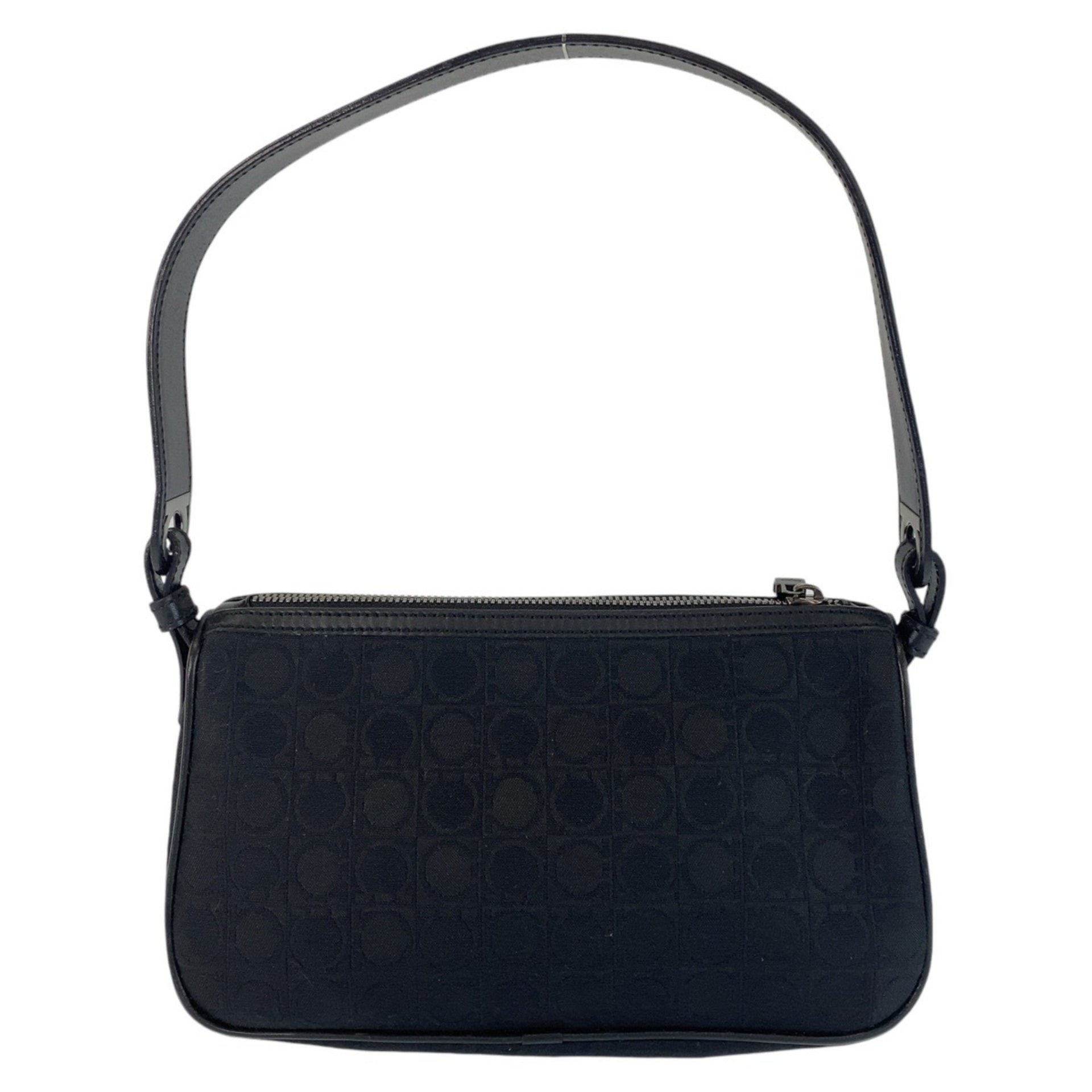 Salvatore Ferragamo Gancini black canvas and leather shoulder bag with accessory pouch for women