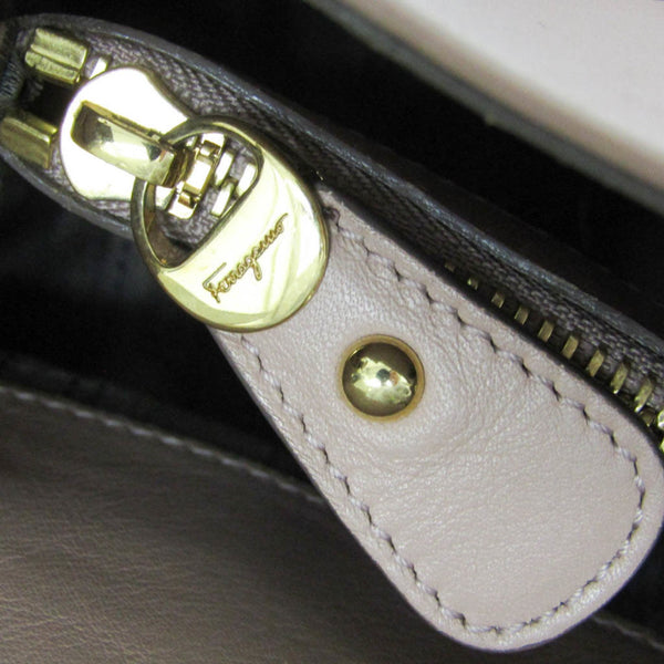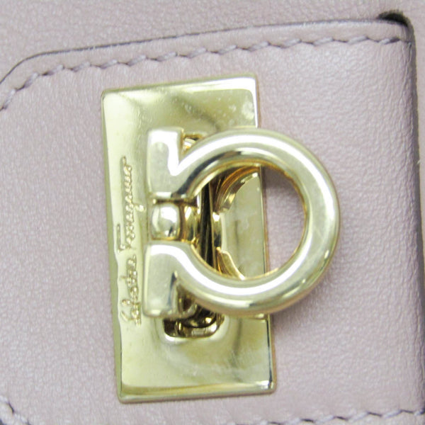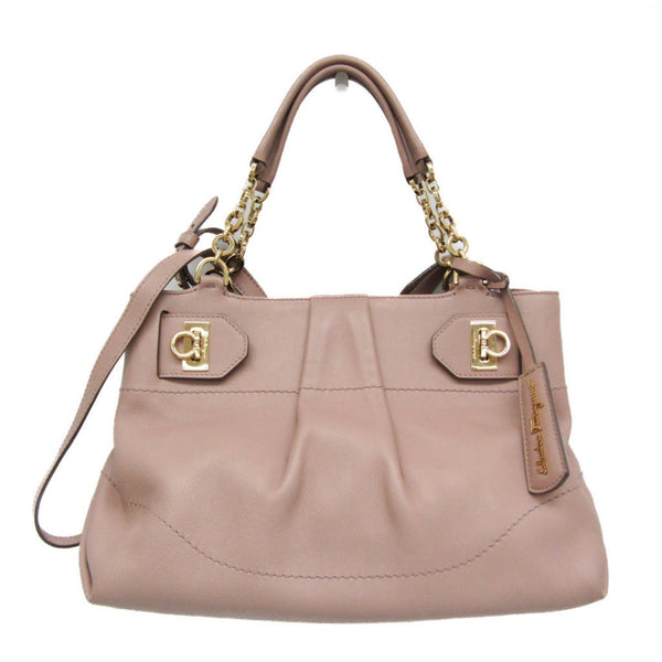 Salvatore Ferragamo Gancini EE-21 D477 Women's Leather Shoulder Bag Pink Beige