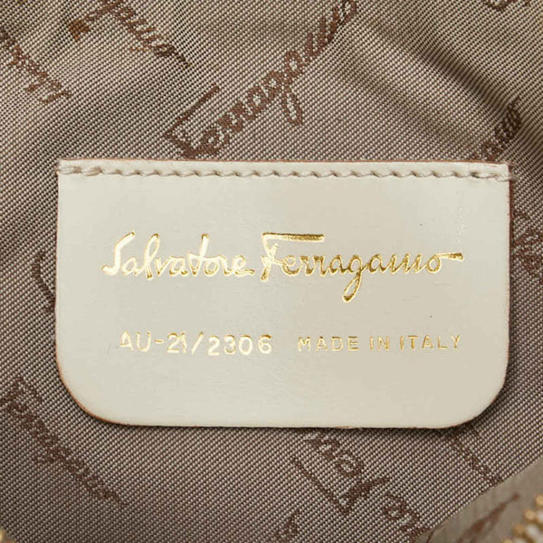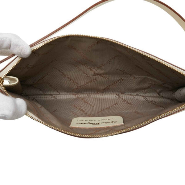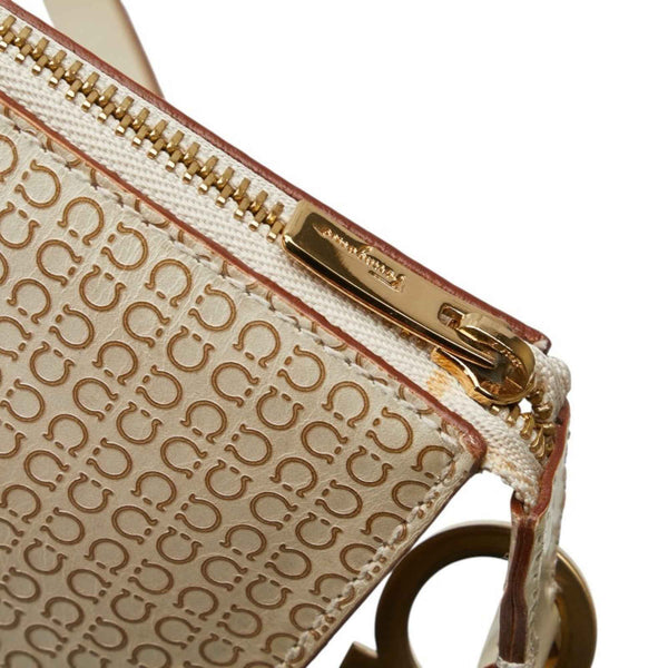 Salvatore Ferragamo Gancini handbag in beige leather for women.