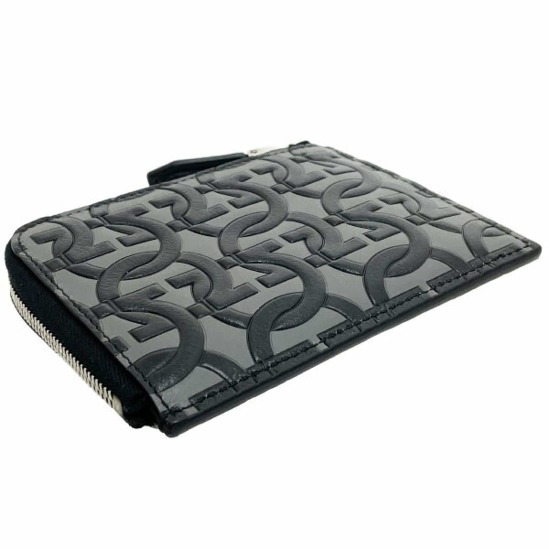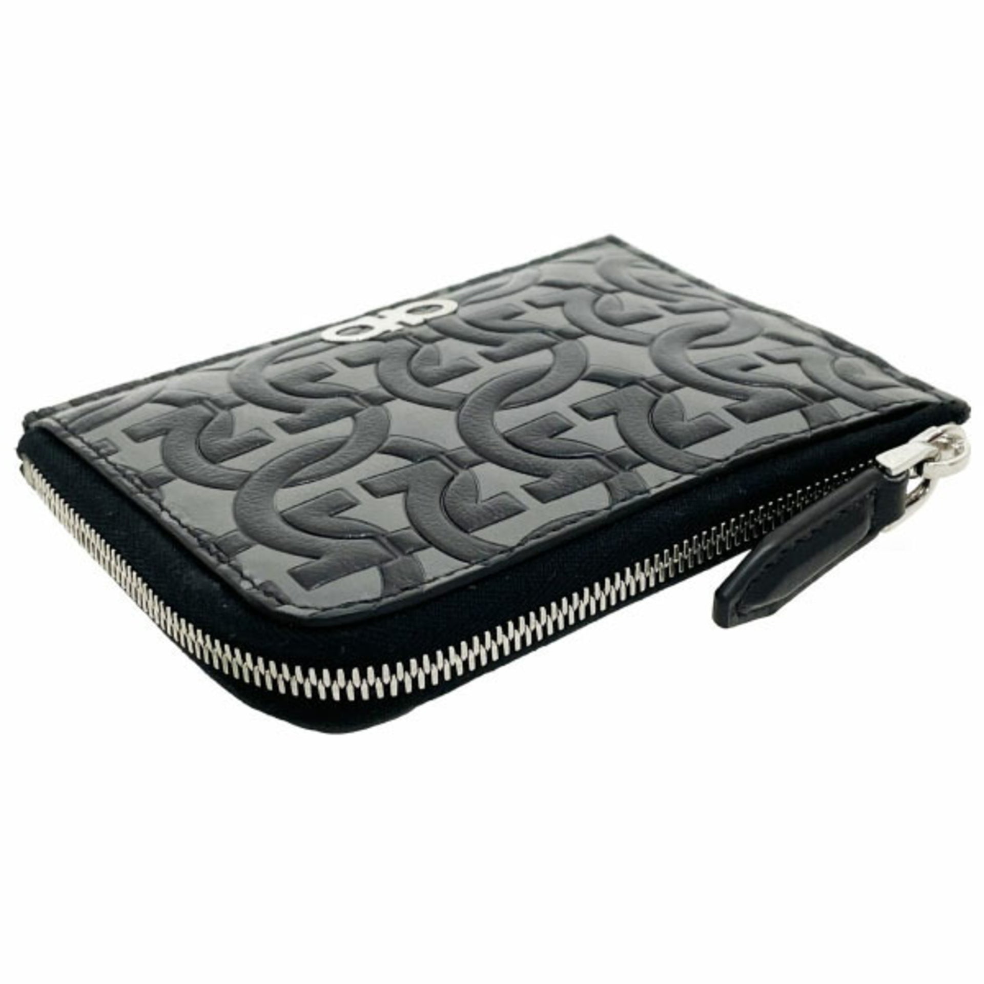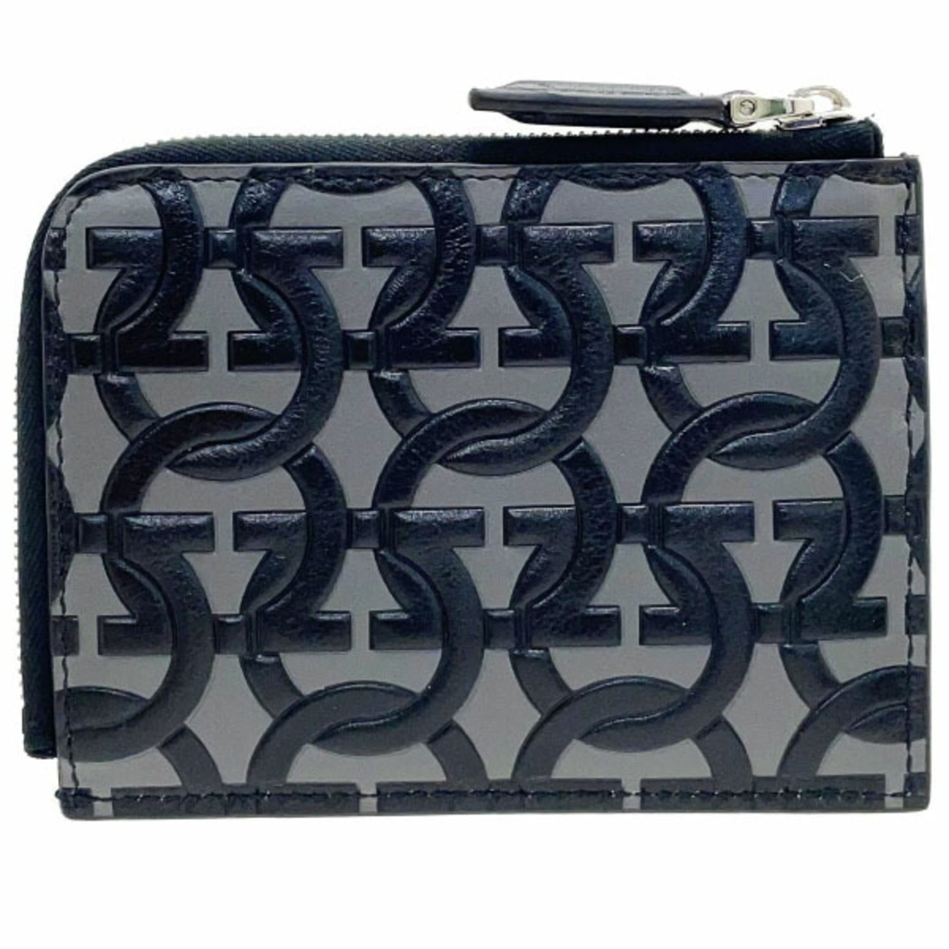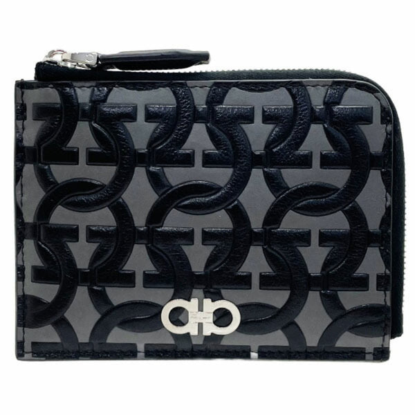 Salvatore Ferragamo Gancini L-shaped compact wallet leather gray black 66 1081 card holder coin purse AA-13317