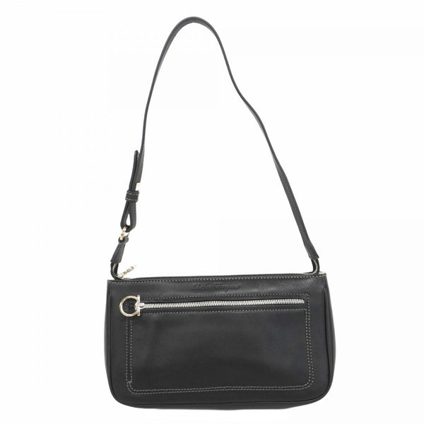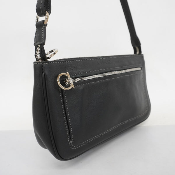 Salvatore Ferragamo Gancini Leather Shoulder Bag, Black, Women's