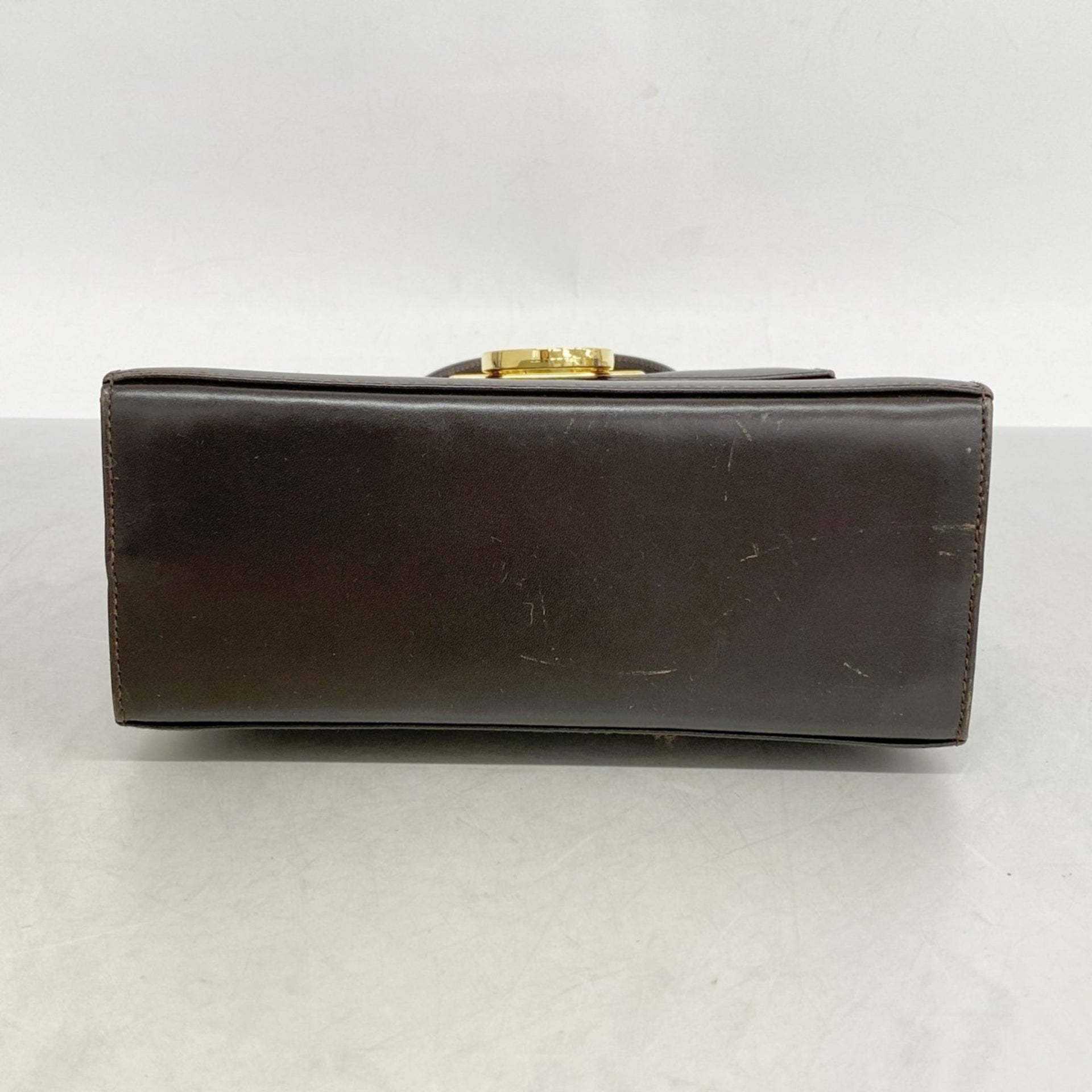Salvatore Ferragamo Gancini Leather Handbag, Dark Brown, 2-Way Bag for Women