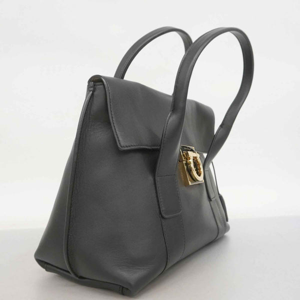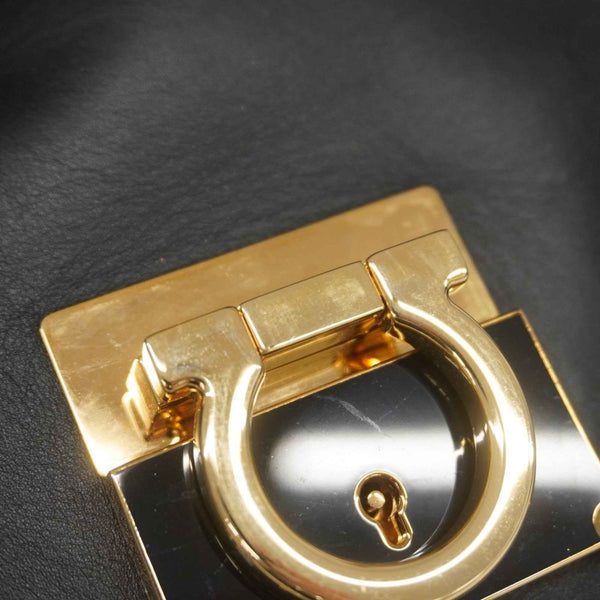 Salvatore Ferragamo Gancini Leather Handbag in Black for Women