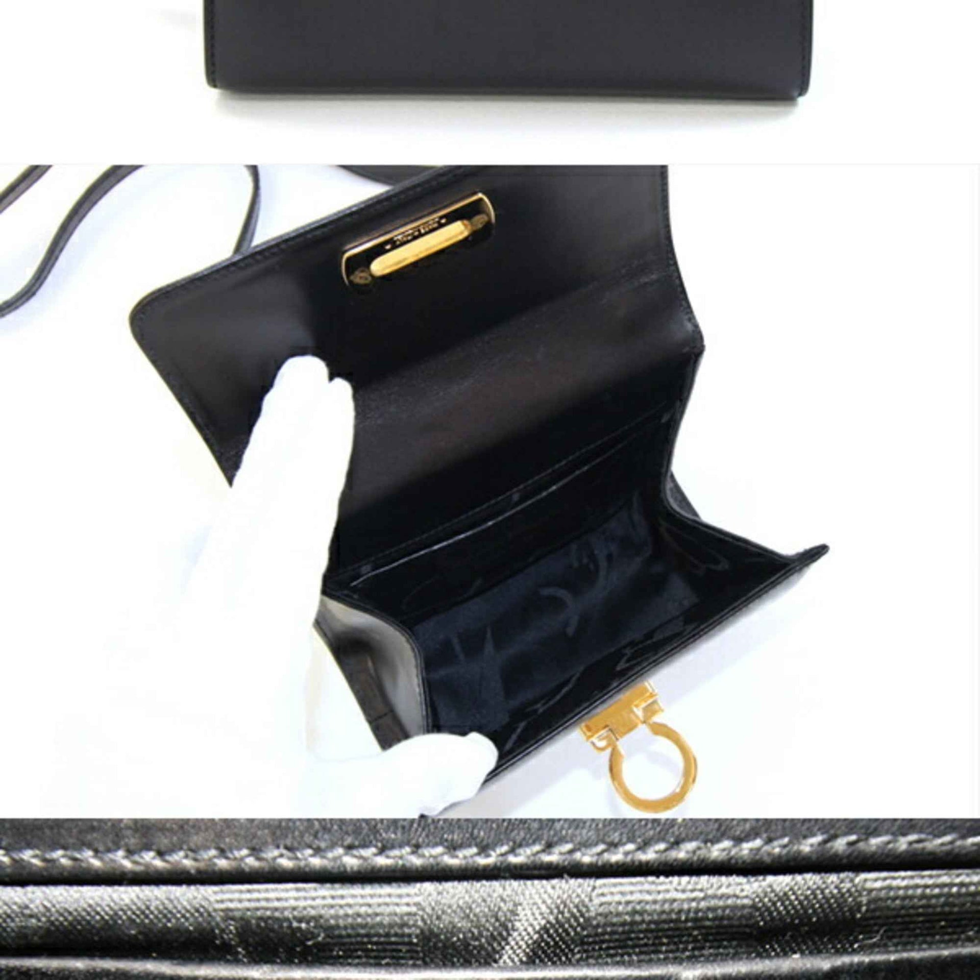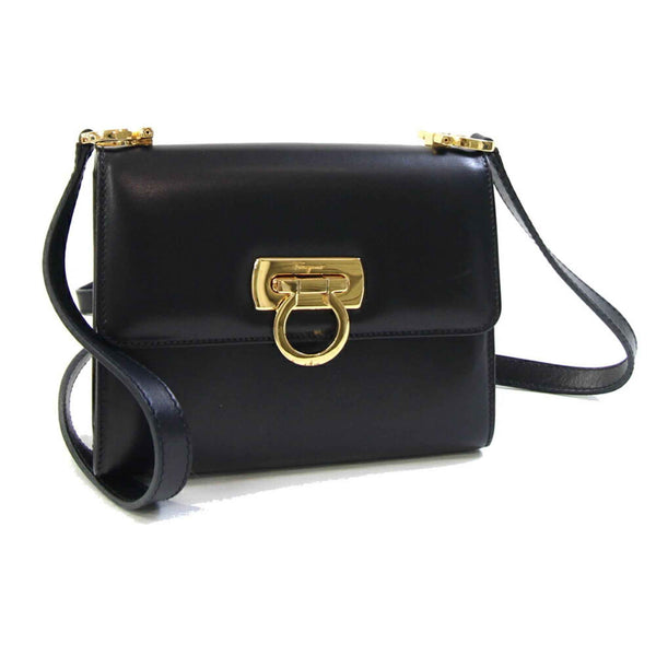 Salvatore Ferragamo Gancini Shoulder Bag 2147 97 Black Leather Pochette for Women