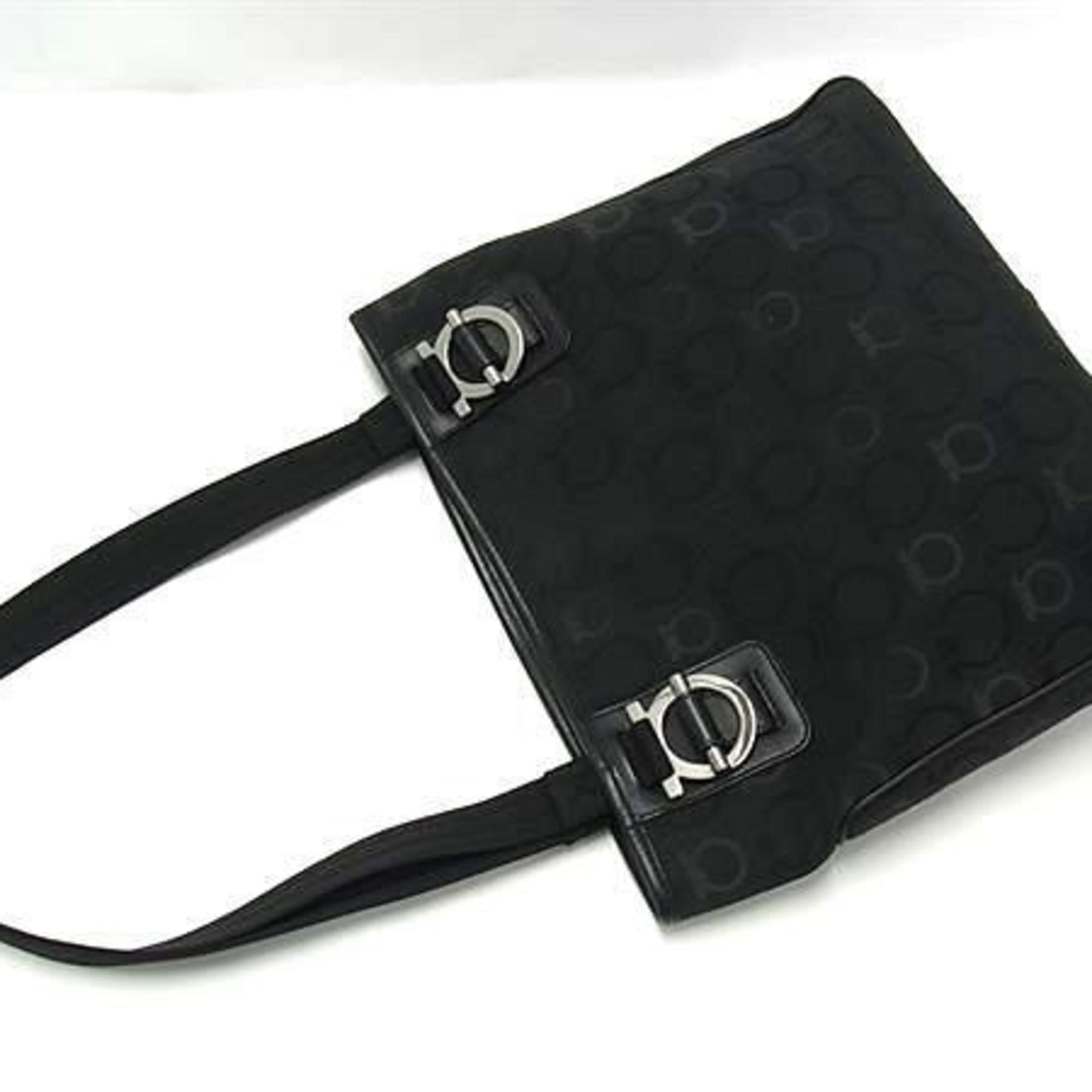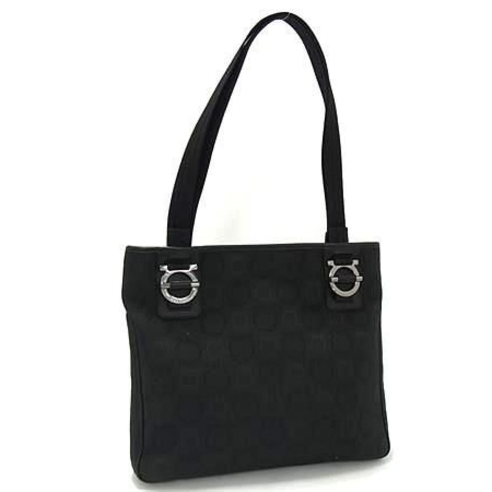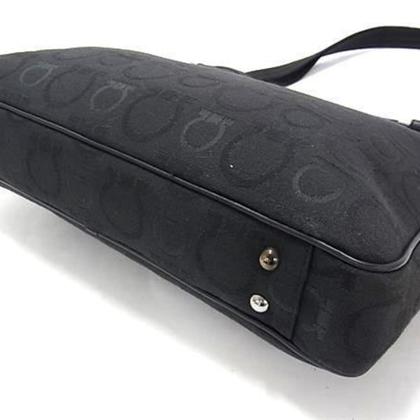 Salvatore Ferragamo Gancini Shoulder Tote Bag, Size 21, 5757, Black Canvas and Leather, Women\'s