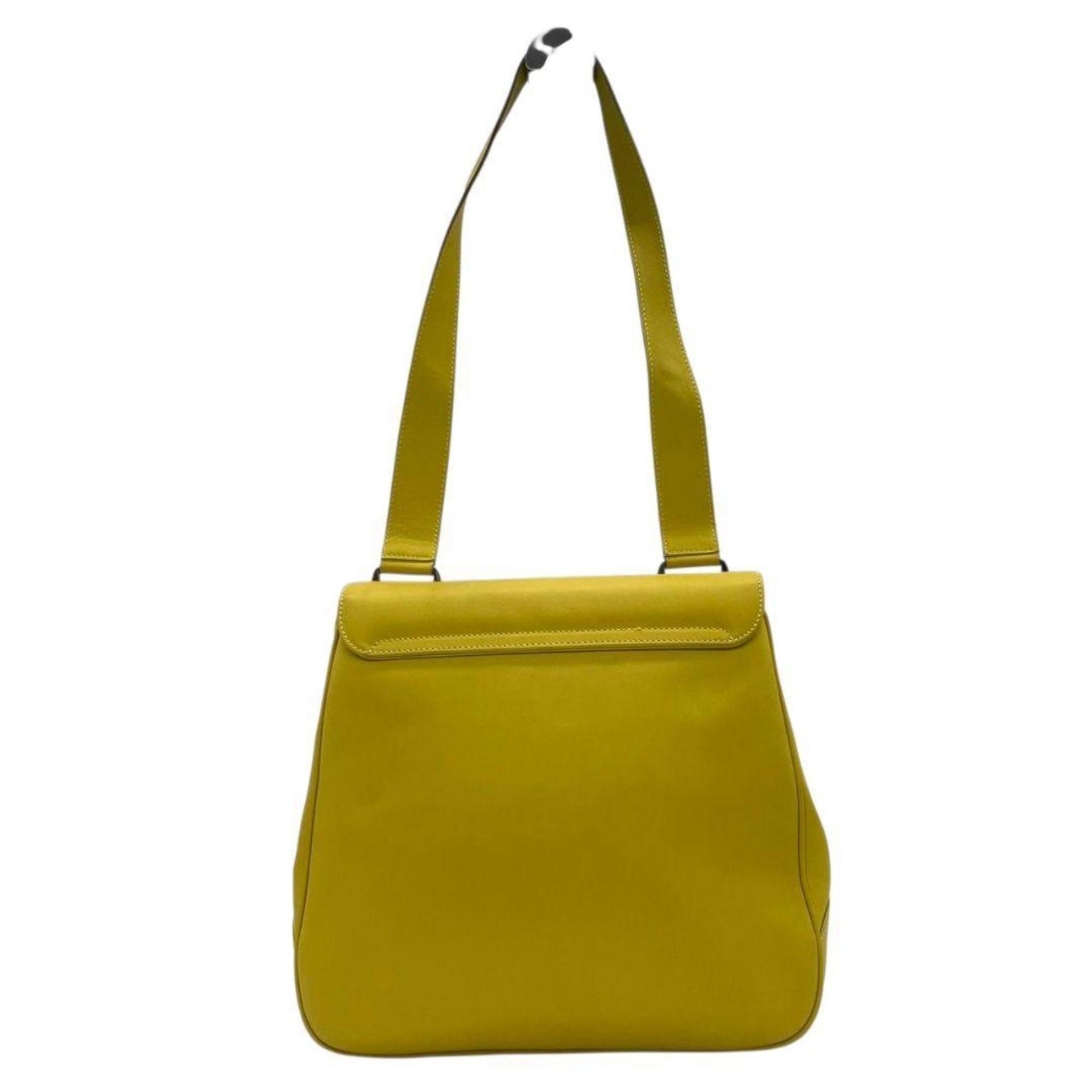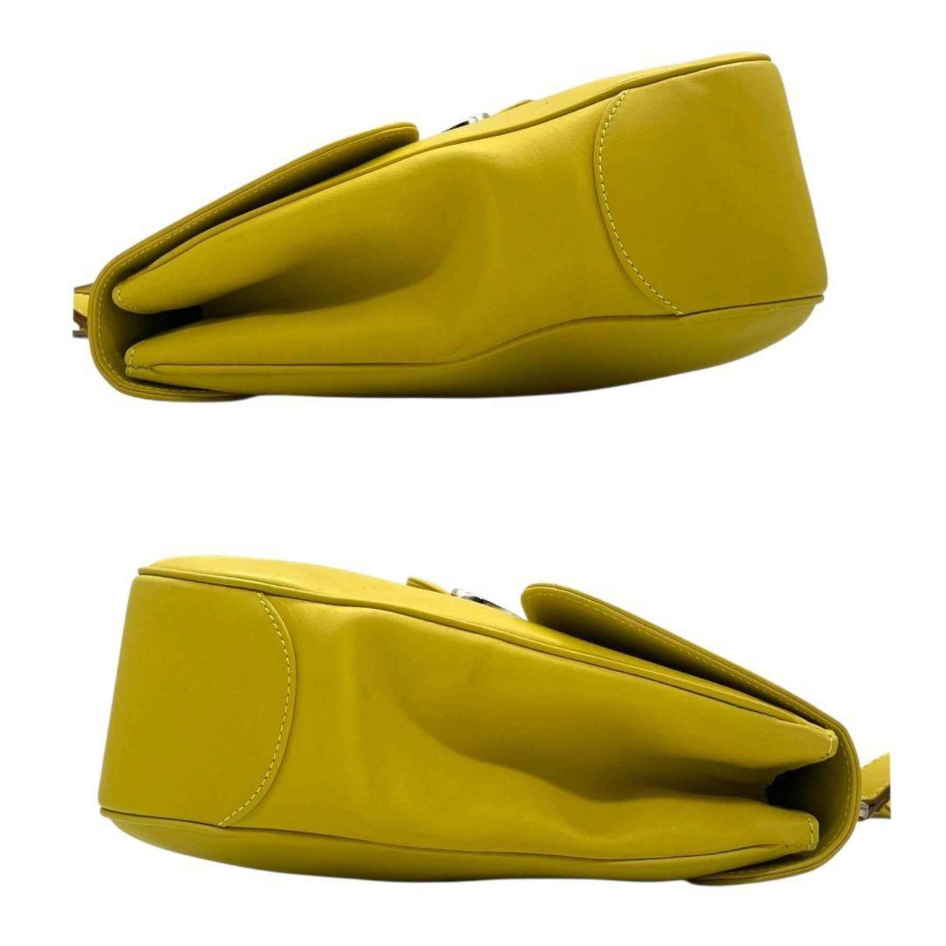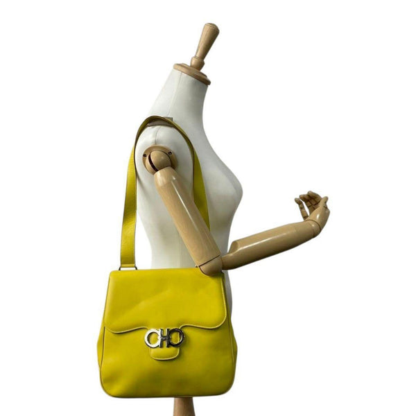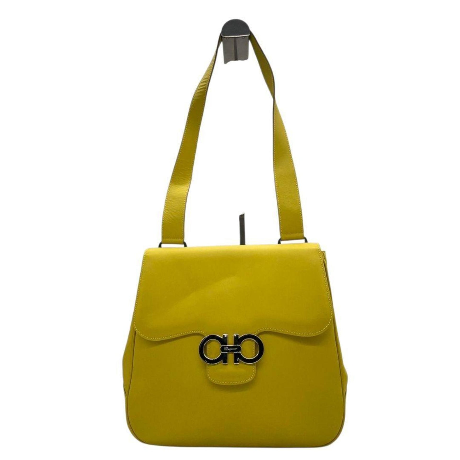 Salvatore Ferragamo handbag, yellow Gancini flap one-shoulder tote bag in leather with silver hardware, BL-217155 M.
