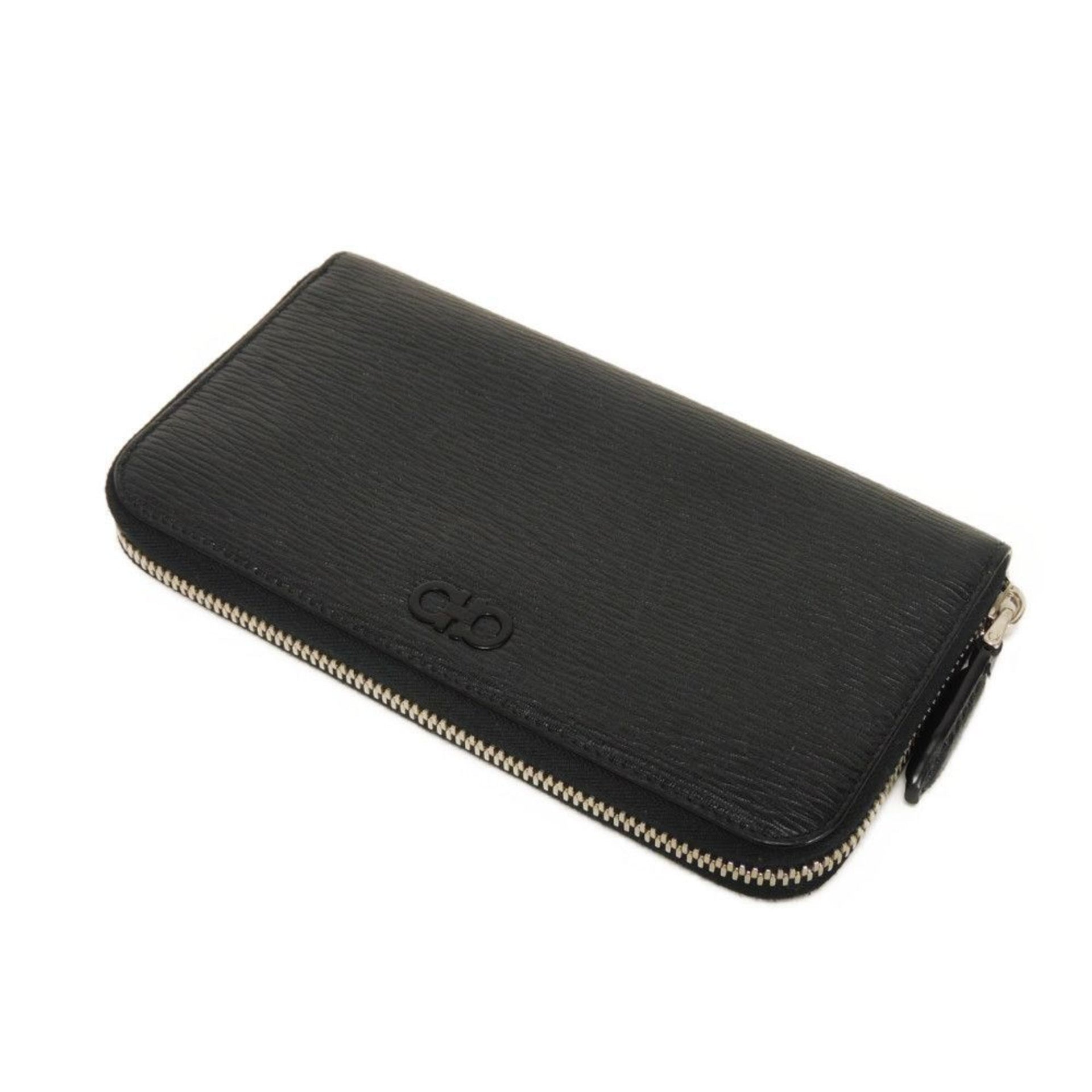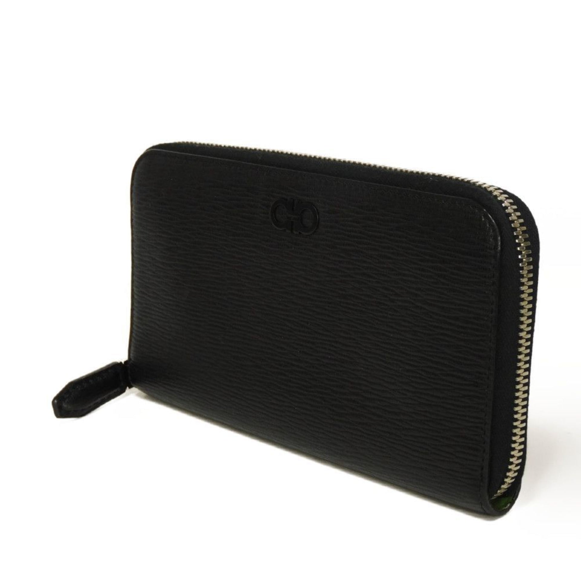 Salvatore Ferragamo Men\'s Long Wallet, Green Two-Tone Round Gancini with Black Leather, 66A590