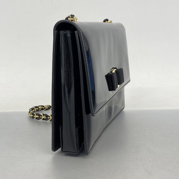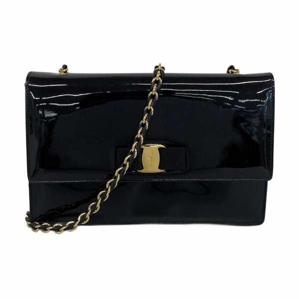 Salvatore Ferragamo Shoulder Bag Vara Enamel Black Women's