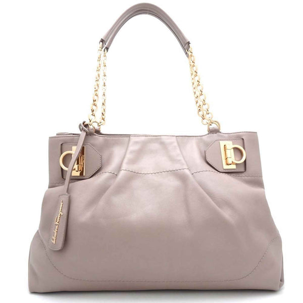 Salvatore Ferragamo Tote Bag Gancini Leather Greige 351518