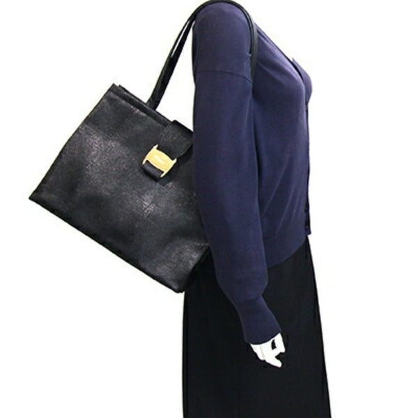 Salvatore Ferragamo Vara 21 8254 Tote Bag, Black Leather Shoulder Ribbon, Women\'s