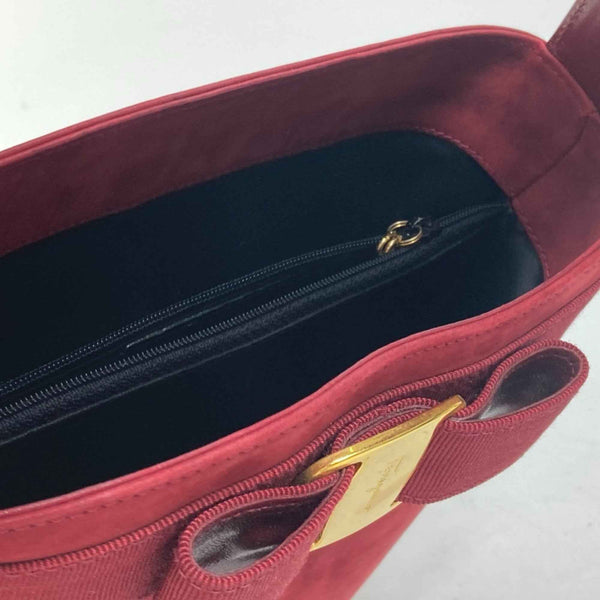 Salvatore Ferragamo Vara Ribbon Bucket Shoulder Bag, Suede Handbag, Women\'s, Red