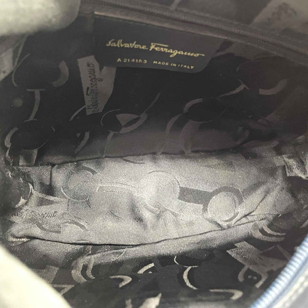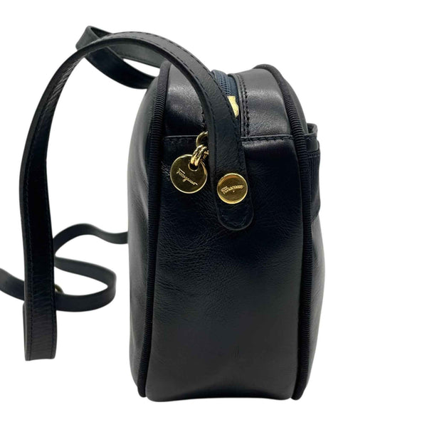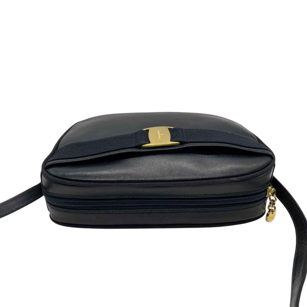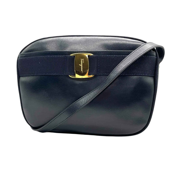 Salvatore Ferragamo Vara Ribbon Shoulder Bag in Navy Leather with Gold Hardware, Women's, Size B3