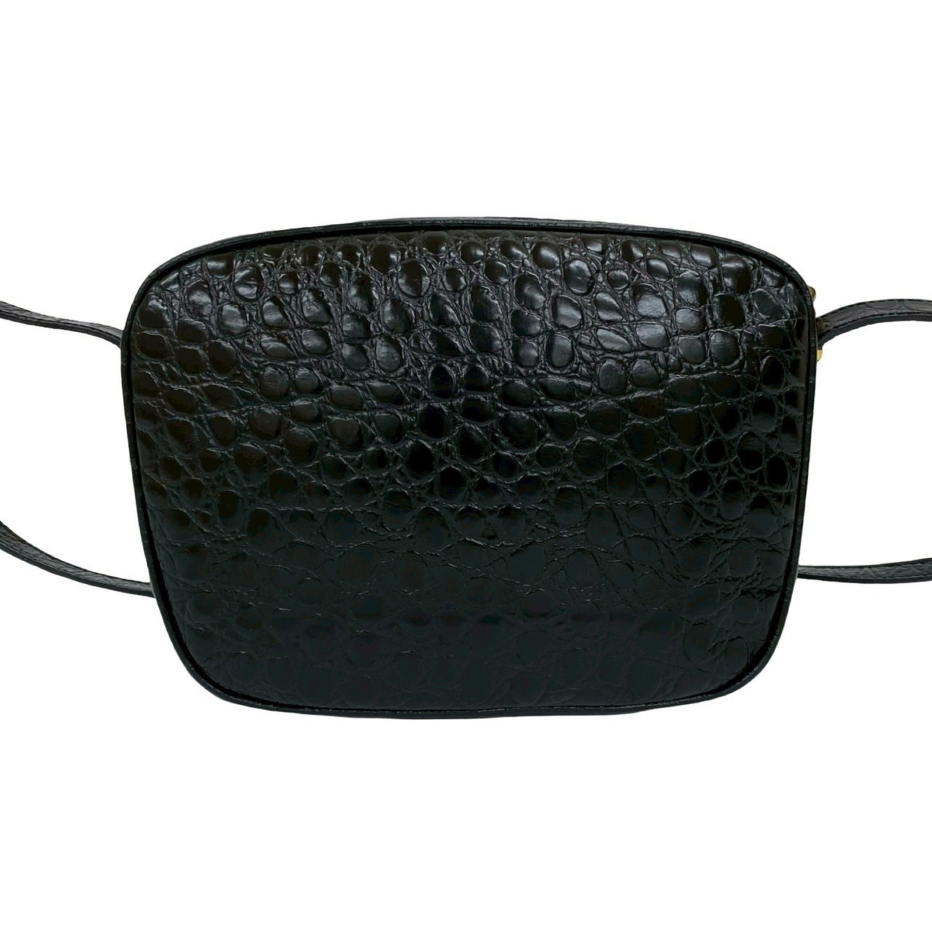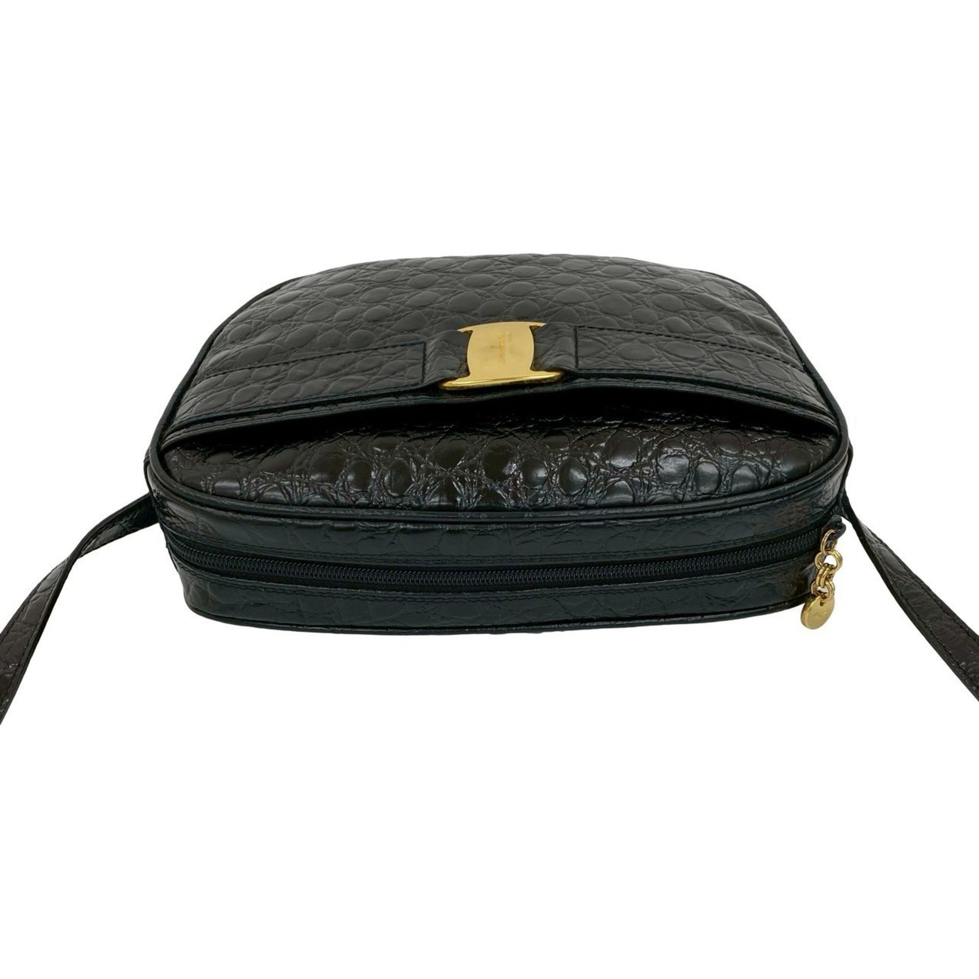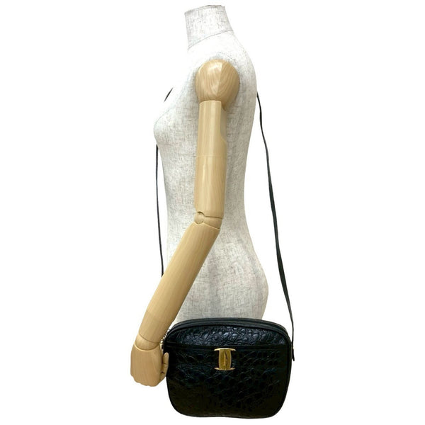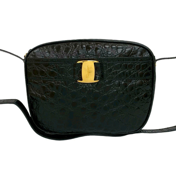 Salvatore Ferragamo Vara shoulder bag with crocodile-embossed hardware and black leather, 45173