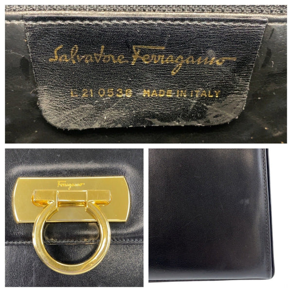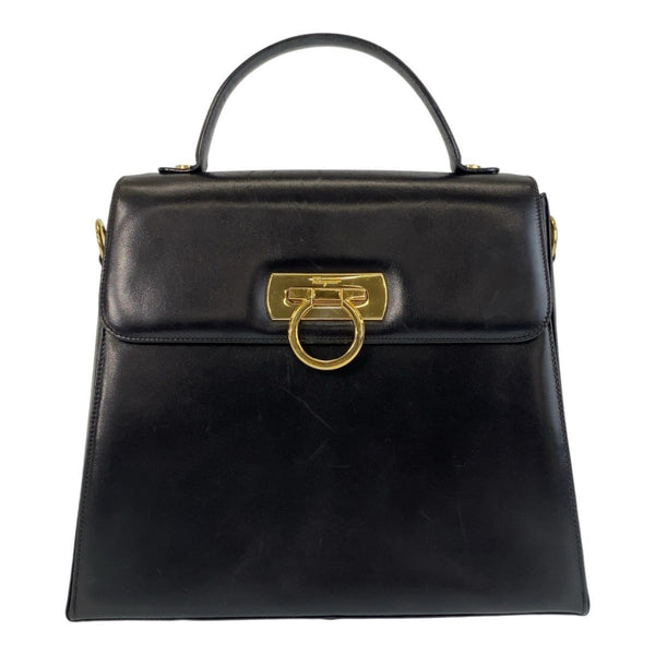 Salvatore Ferragamo Vintage Gancini Black Gold Hardware Leather E 21 0536 Handbag for Women