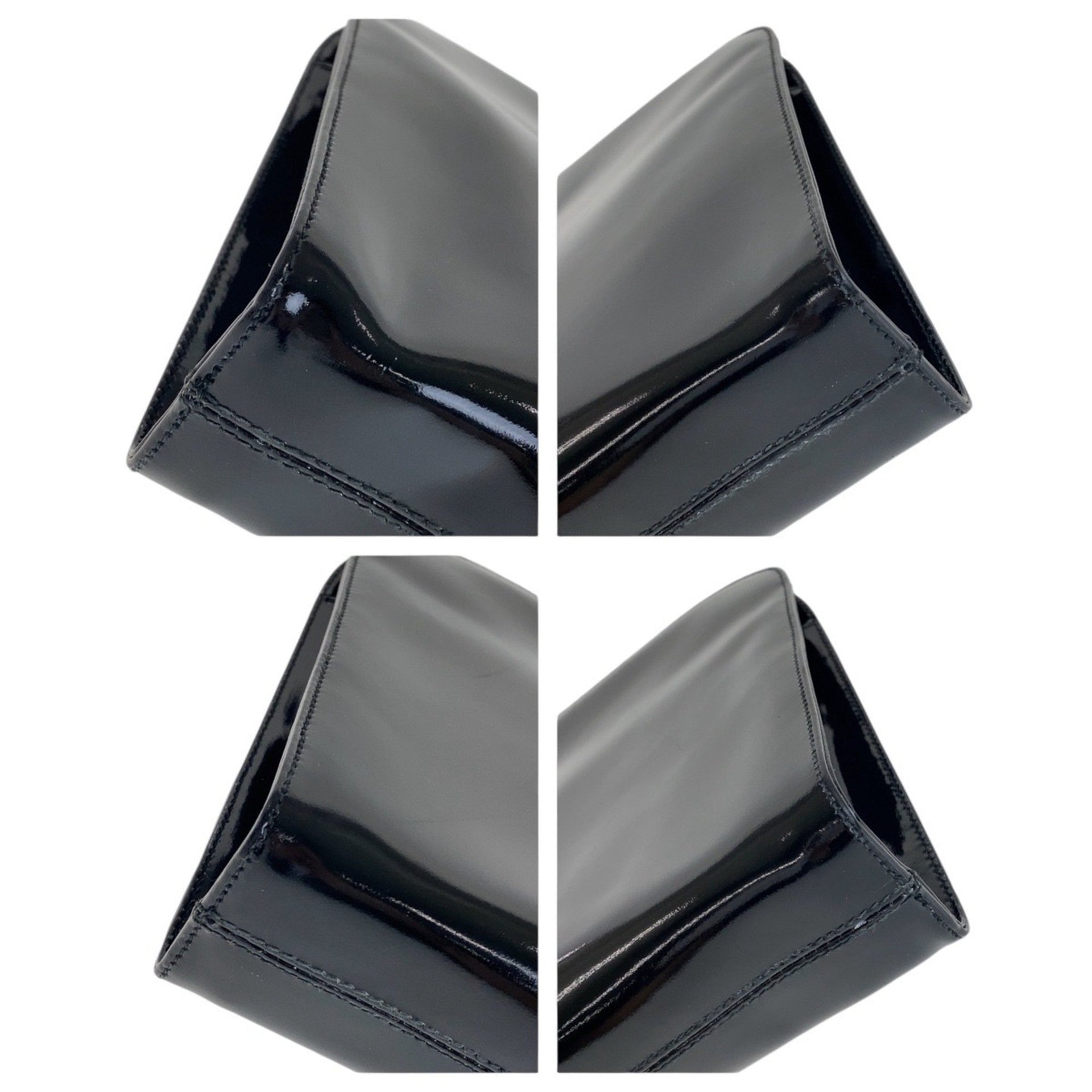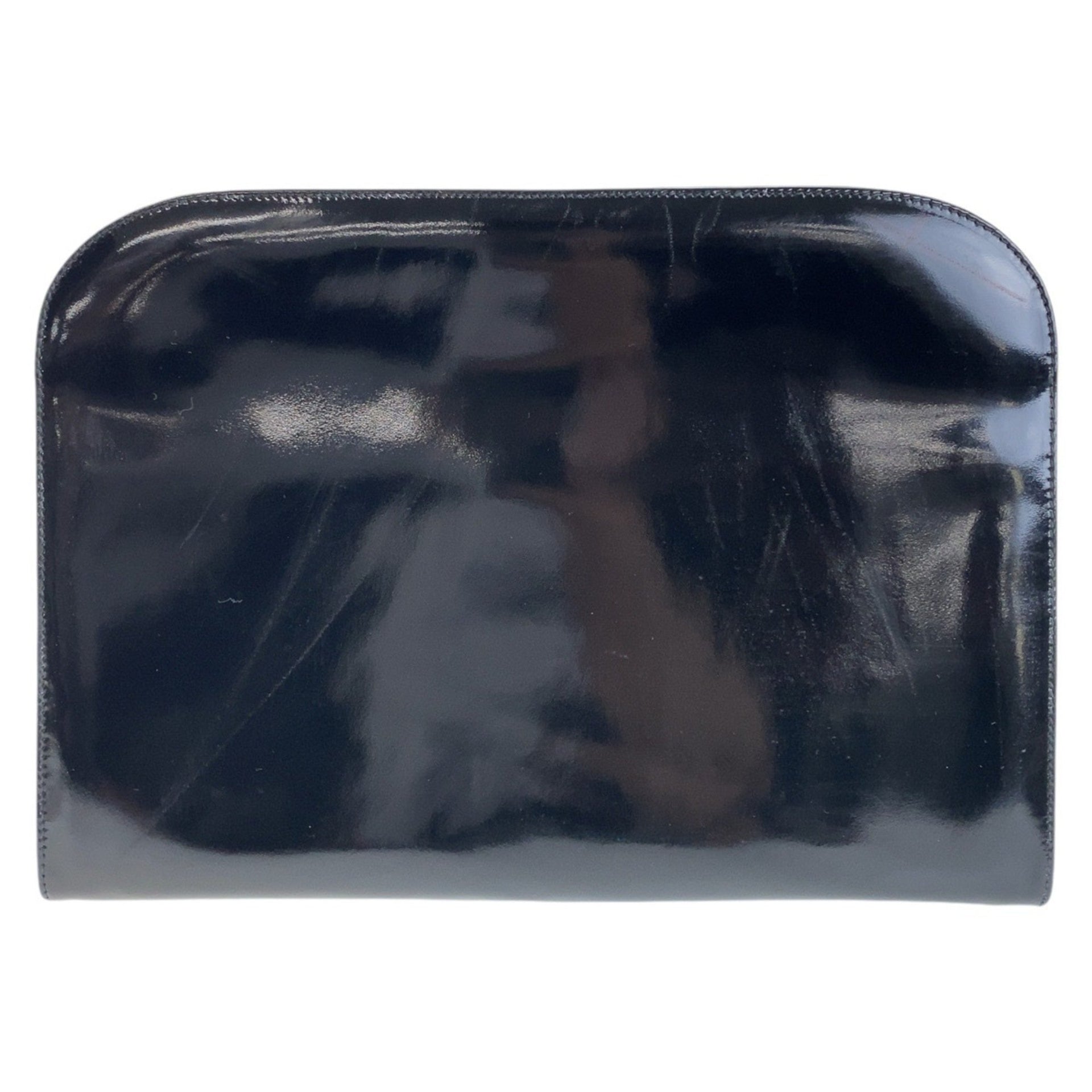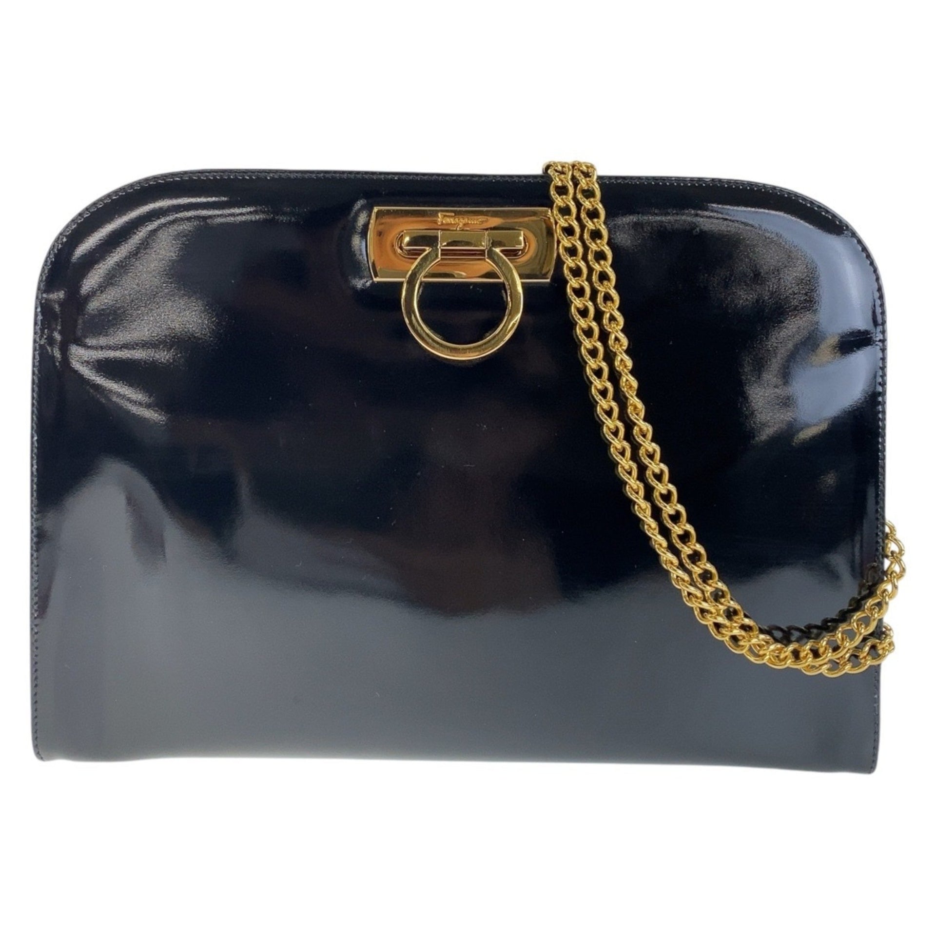 Salvatore Ferragamo Vintage Gancini Black Gold Hardware Patent Leather P21 0587 Shoulder Bag Clutch for Women