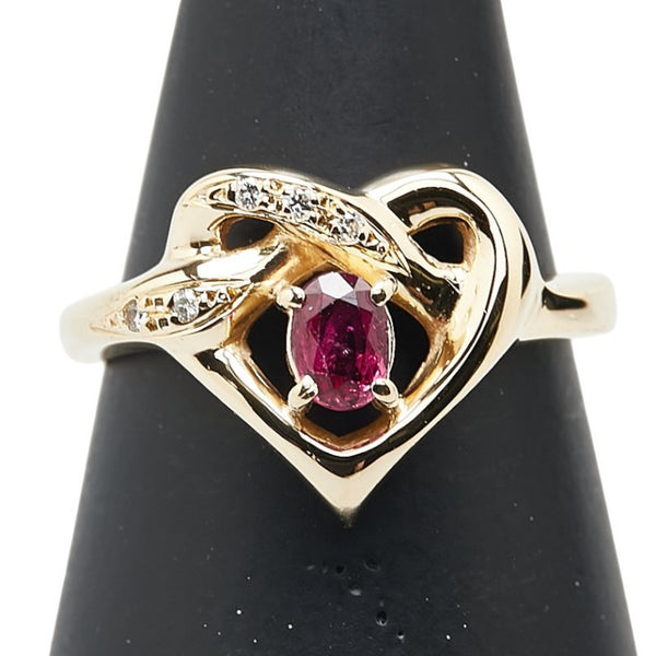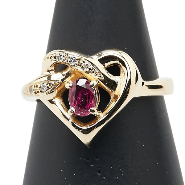 Seiko 18K Yellow Gold Ruby and Diamond Heart Ring for Women