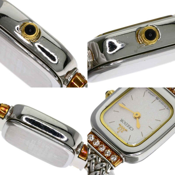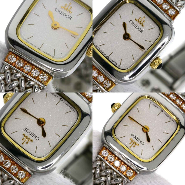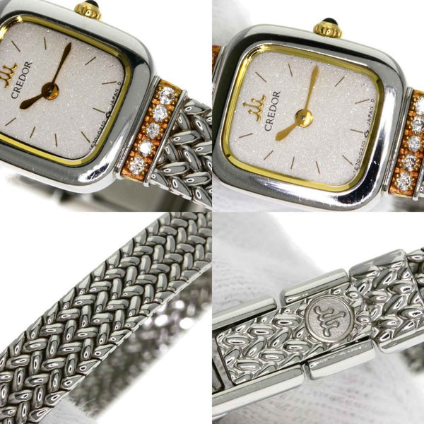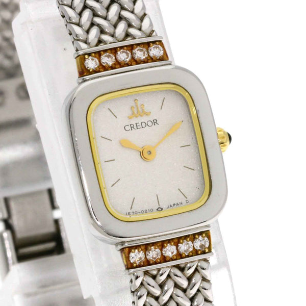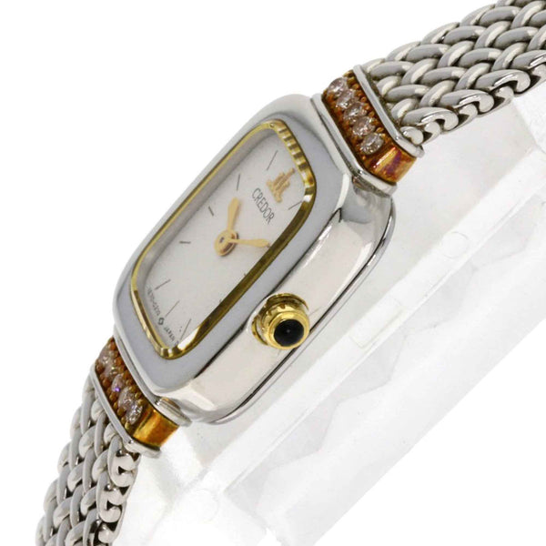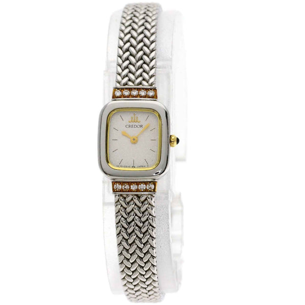 Seiko 1E70-5130 Credor Square Face Diamond Watch, Stainless Steel/18K White Gold, Women\'s