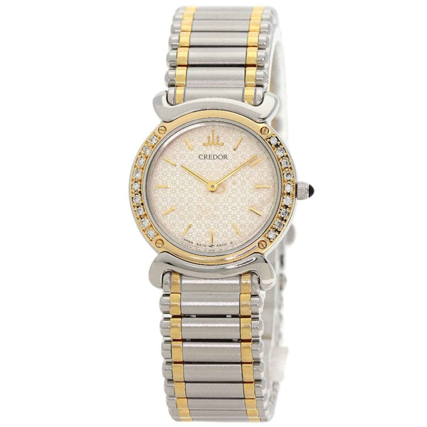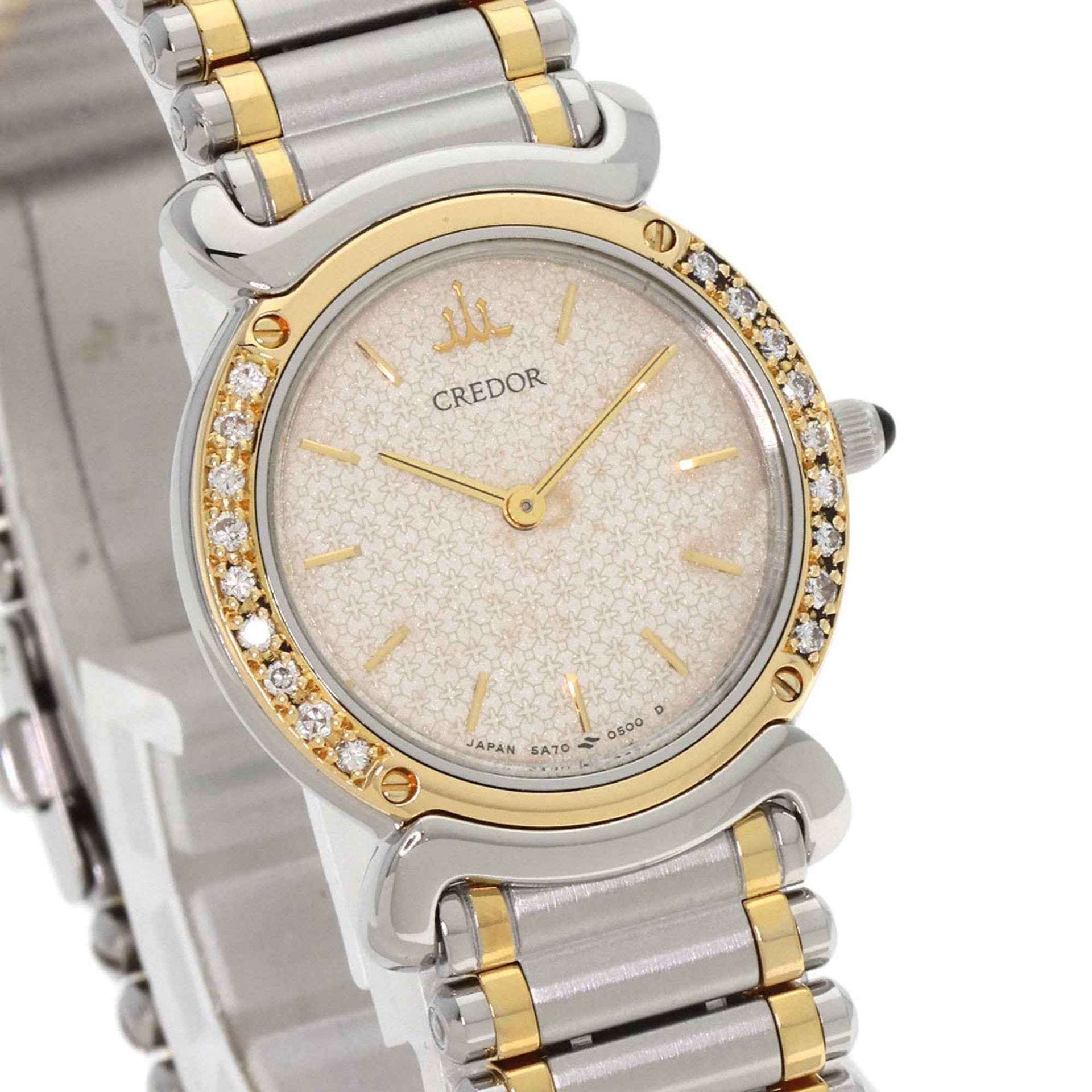 Seiko 5A70-0210 Credor Bezel Diamond Watch Stainless Steel SSxK18YG Women\'s SEIKO
