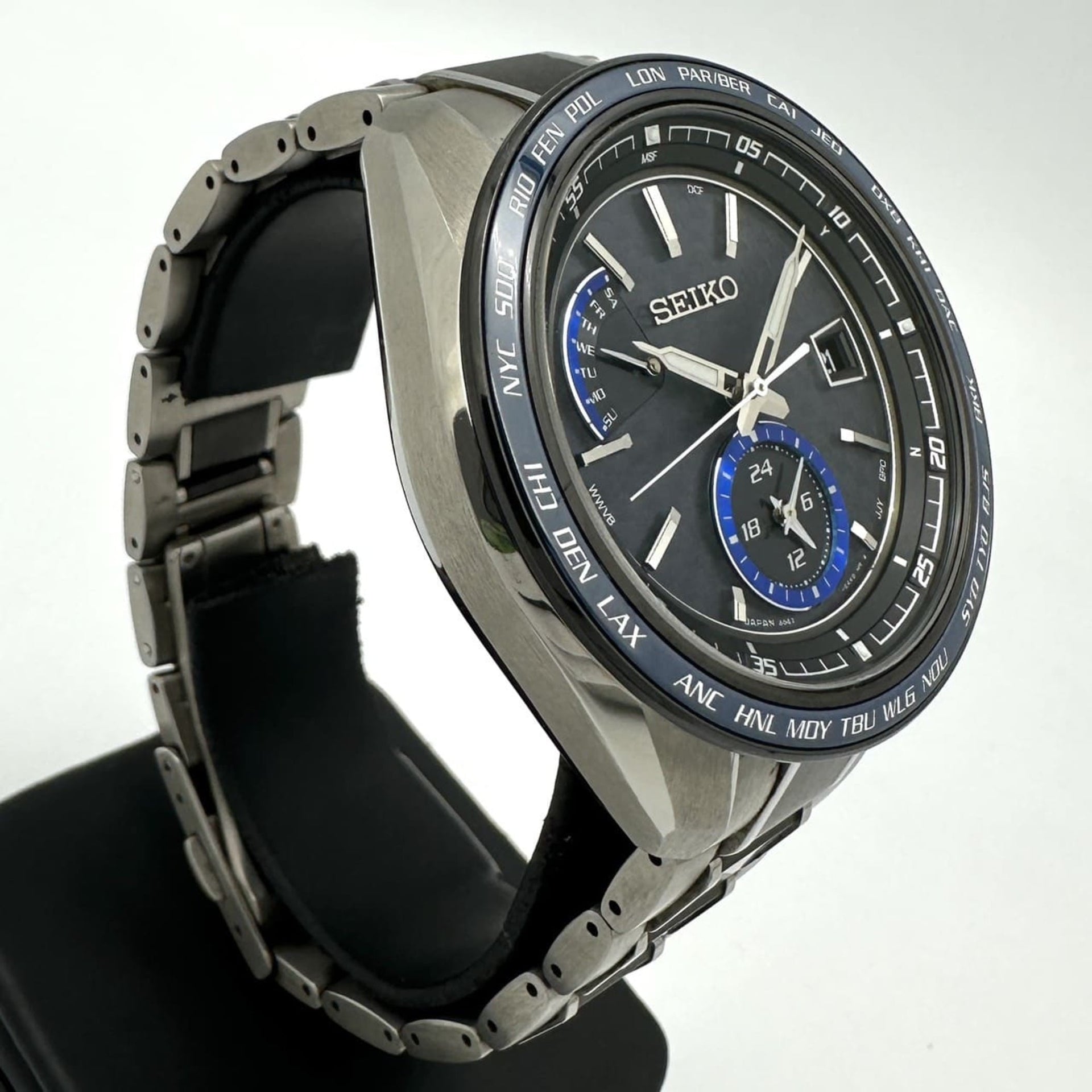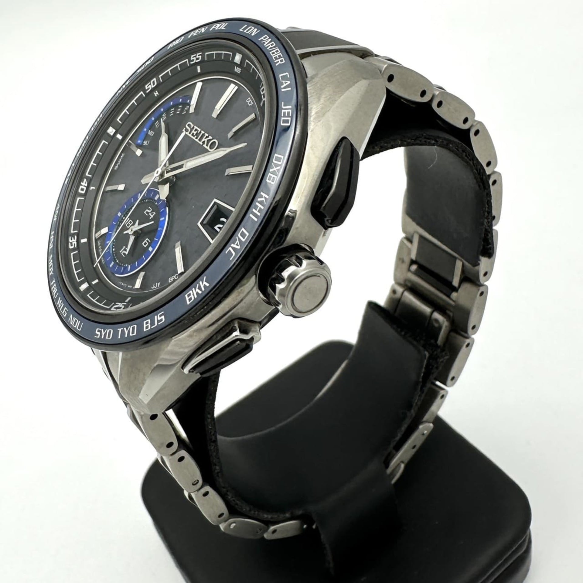 Seiko Brightz SAGA261/8B63-0AN0 Men\'s Watch, Day Date, Solar Radio Control, Titanium, Black and Navy