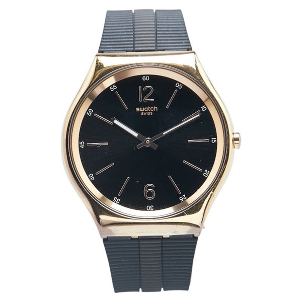 Swatch BIENNE BY NIGHT Watch SS07G102 Quartz Black Dial Stainless Steel Rubber Men\'s