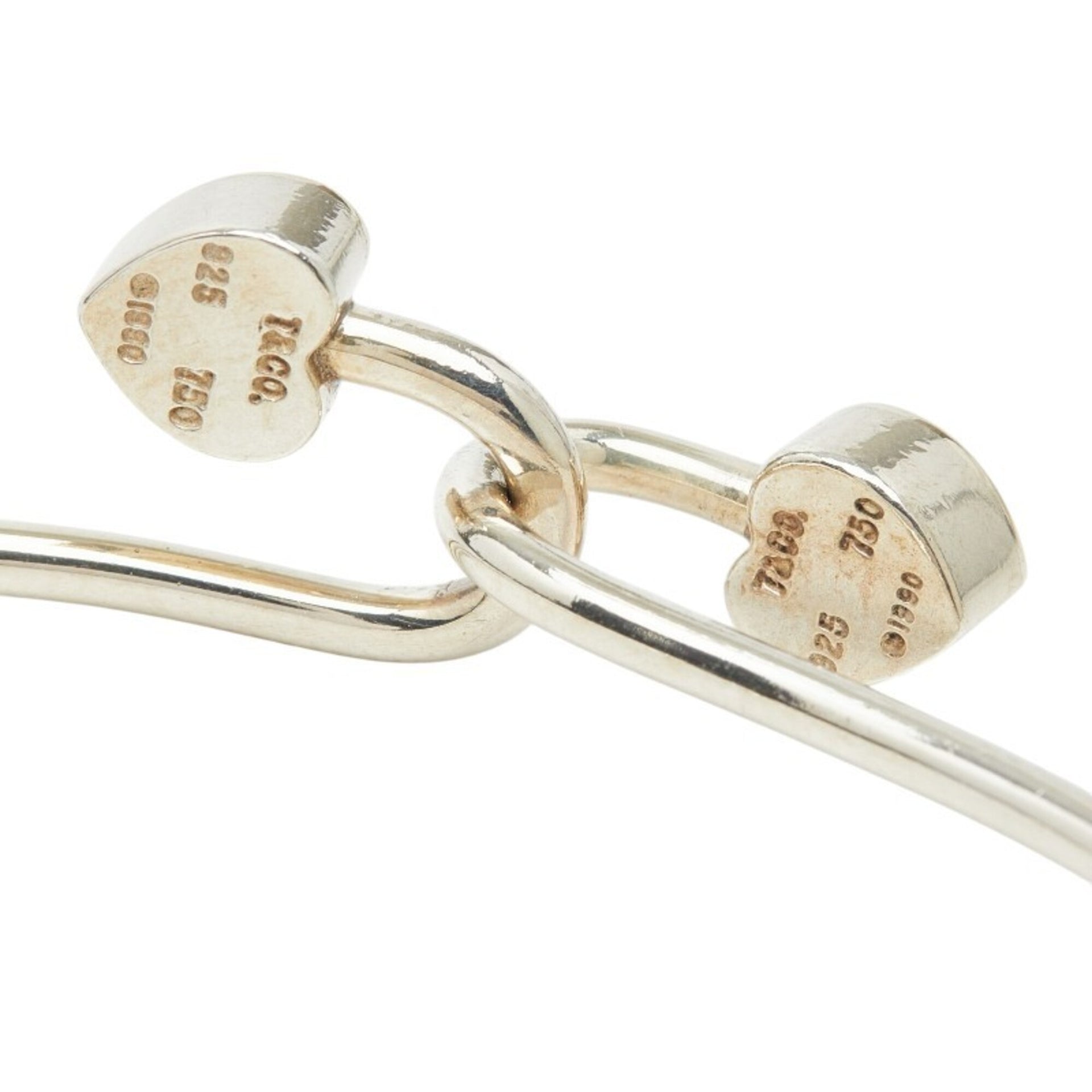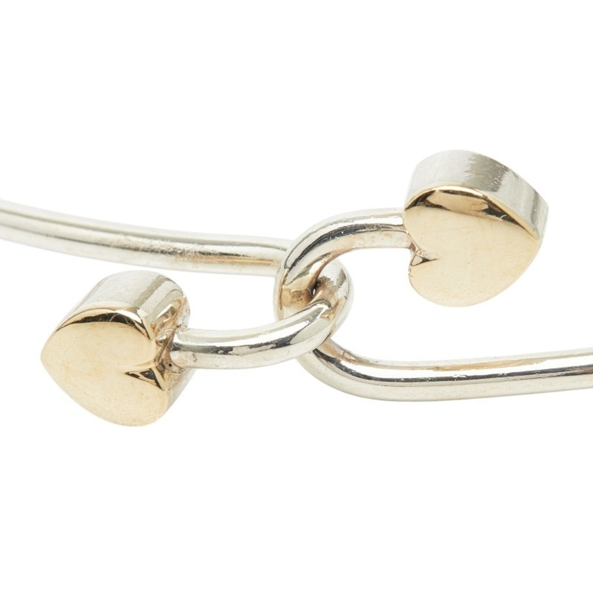 Tiffany & Co. Double Heart Hook Bangle Bracelet, SV925 Sterling Silver, 18K Yellow Gold, Women\'s.