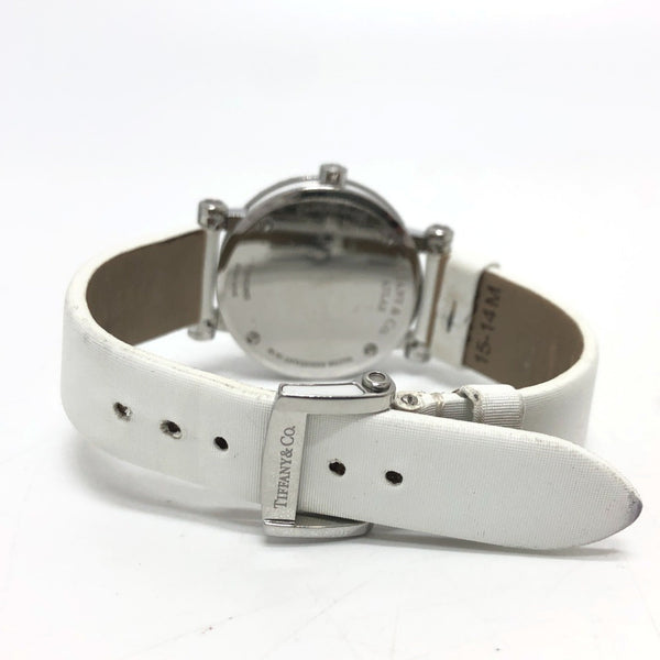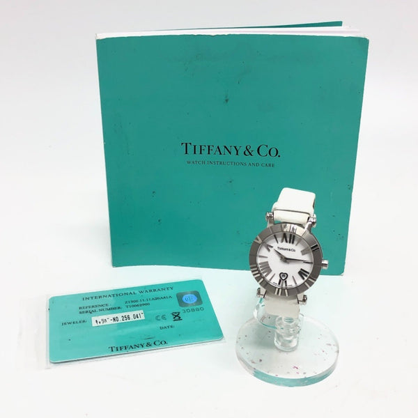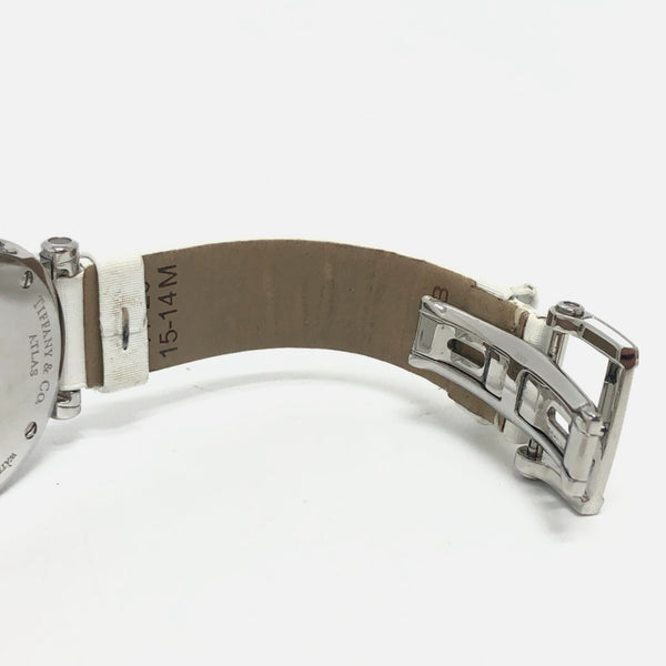 TIFFANY & Co. Z1300.11.11A20A41A White Ceramic Atlas Quartz Date Watch with Stainless Steel and Leather Strap, Silver