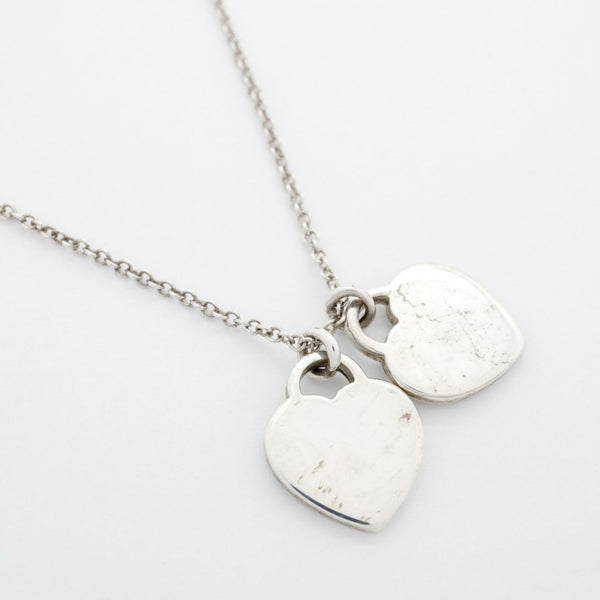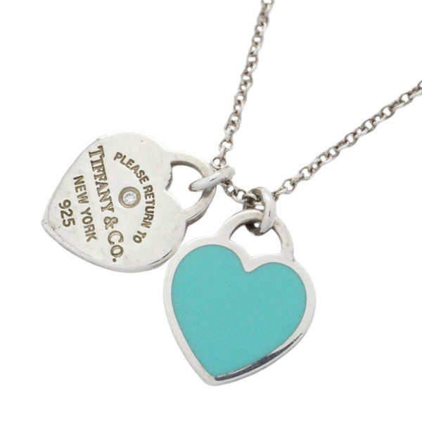 Tiffany Double Return to Heart Necklace, 1PD, Silver 925, Diamond, Blue, Women\'s