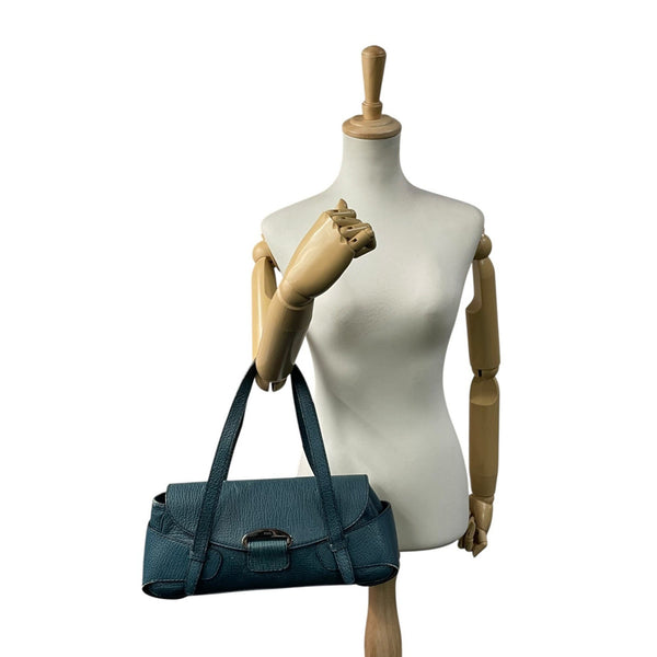 Tod\'s Mini Boston Handbag, Grained Leather, Blue, Silver Hardware, Women\'s, A7