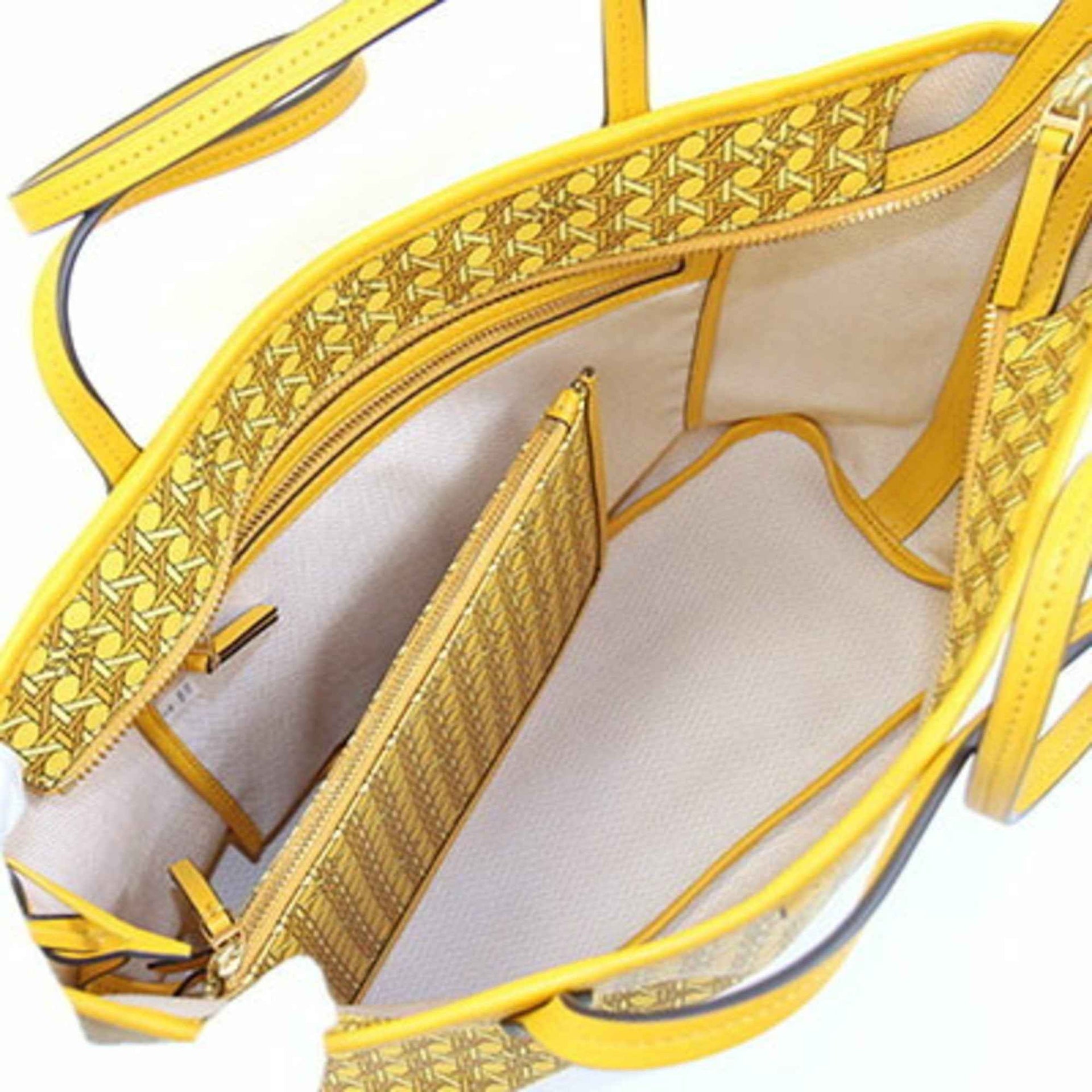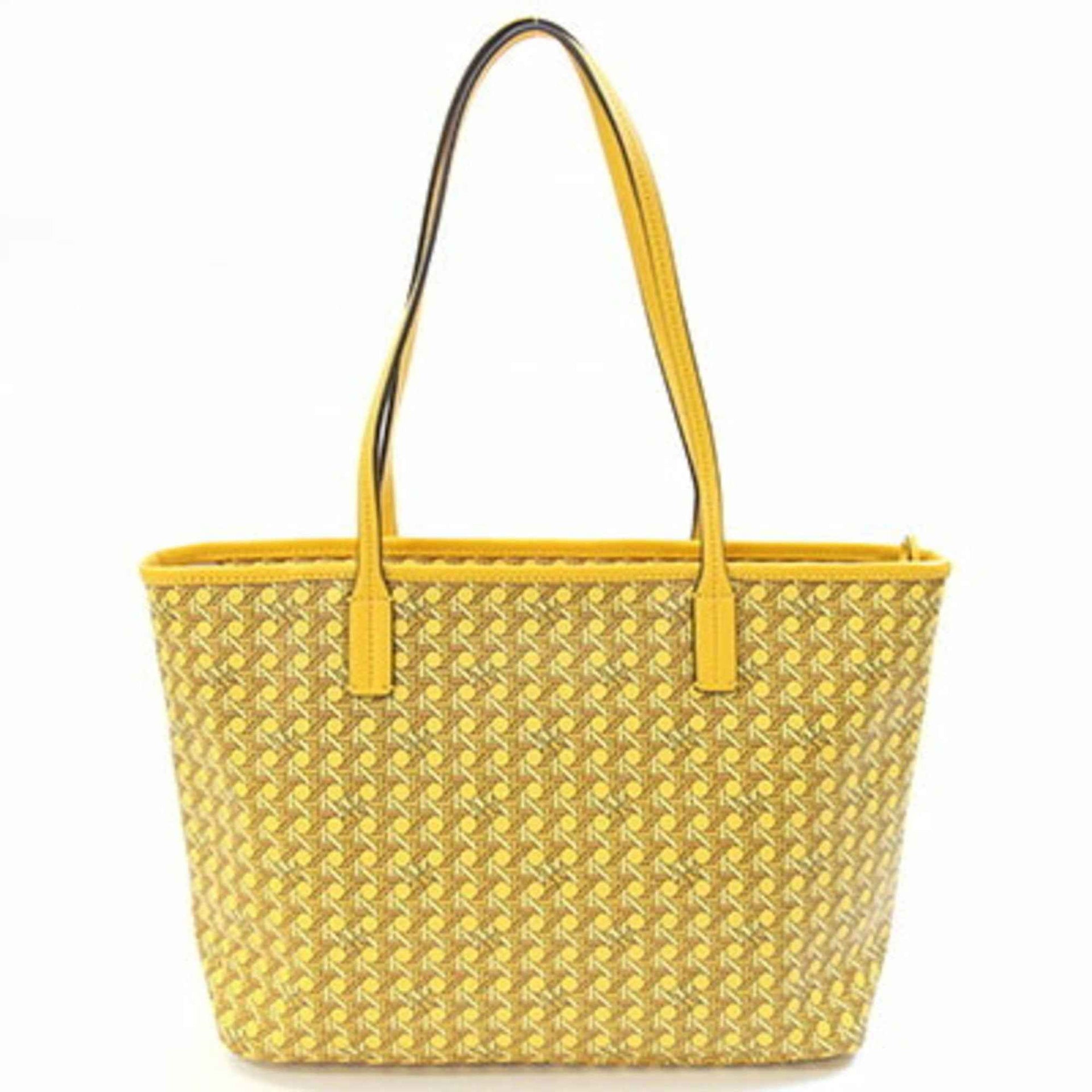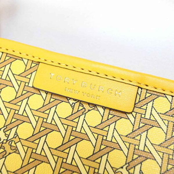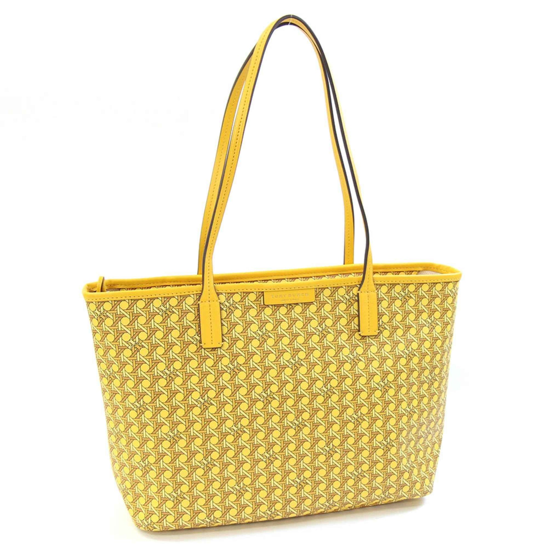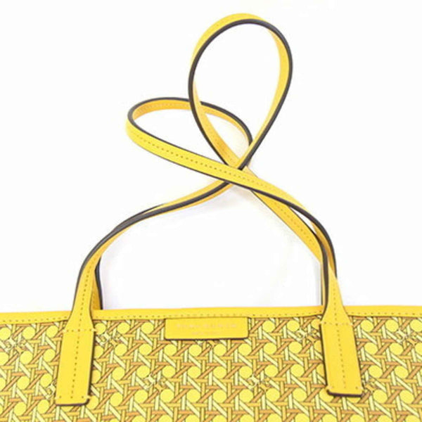 Tory Burch Basket Weave Tote Bag 147748 Yellow Coated Canvas Leather Shoulder Women\'s TORY BURCH