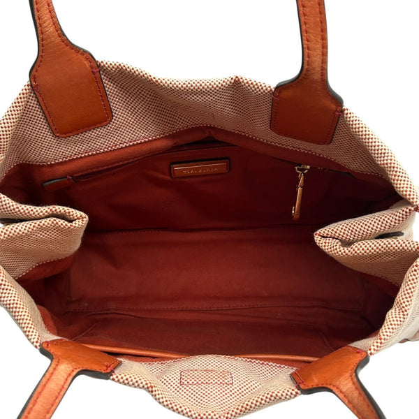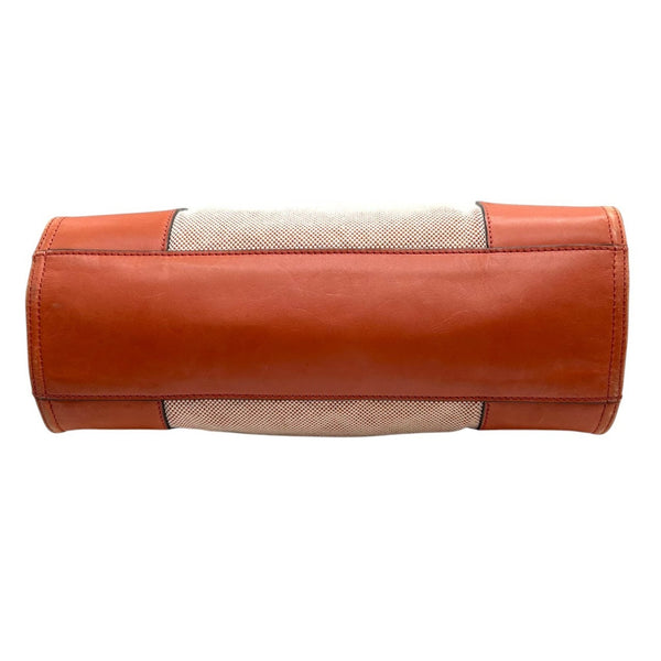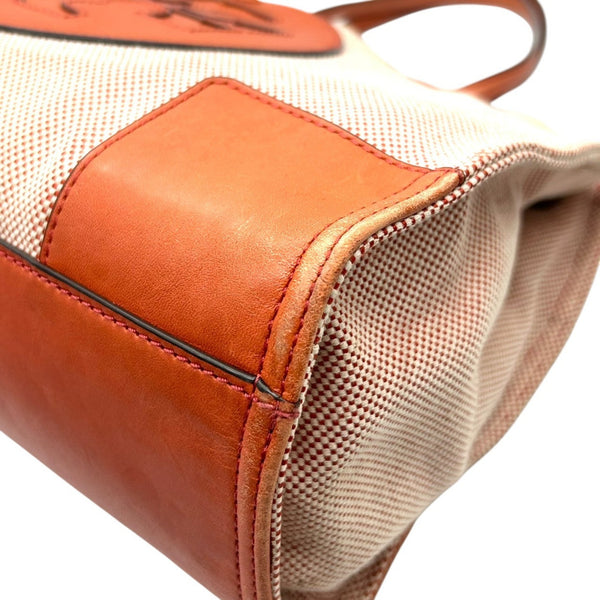 Tory Burch Ella Tote Bag for Women, Canvas and Leather, Orange Brown, Handbag with Big Logo, Size s36