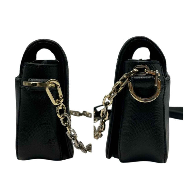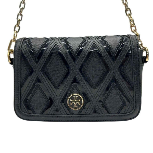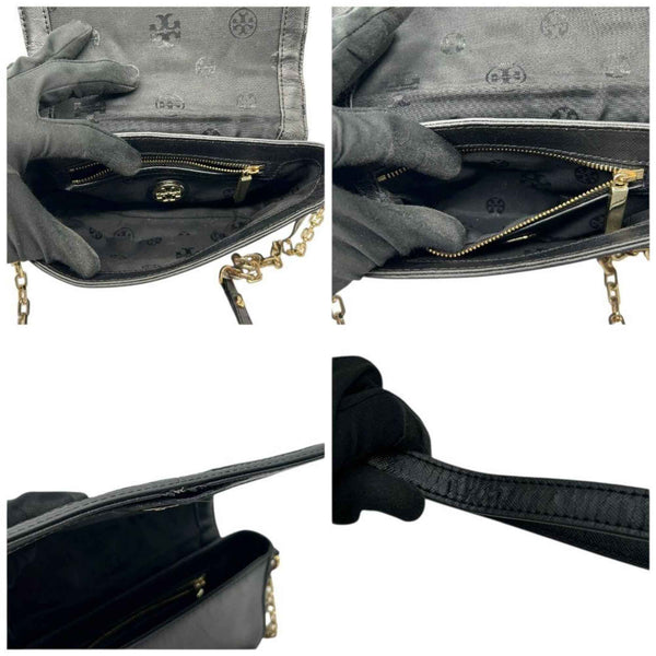 Tory Burch Fleming Shoulder Bag, Black Chain Leather Flap, Logo Plate, Gold Hardware, Clutch Handbag