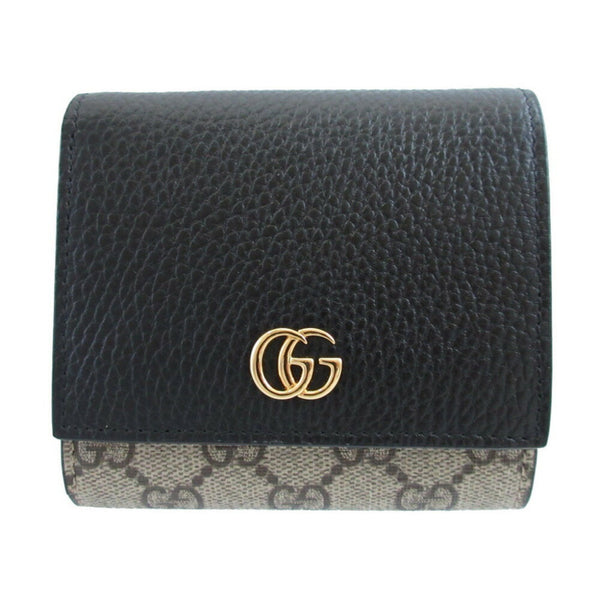 Unused Gucci Compact Wallet GG Marmont 598587 Supreme Leather Beige Black Bi-fold 0204GUCCI