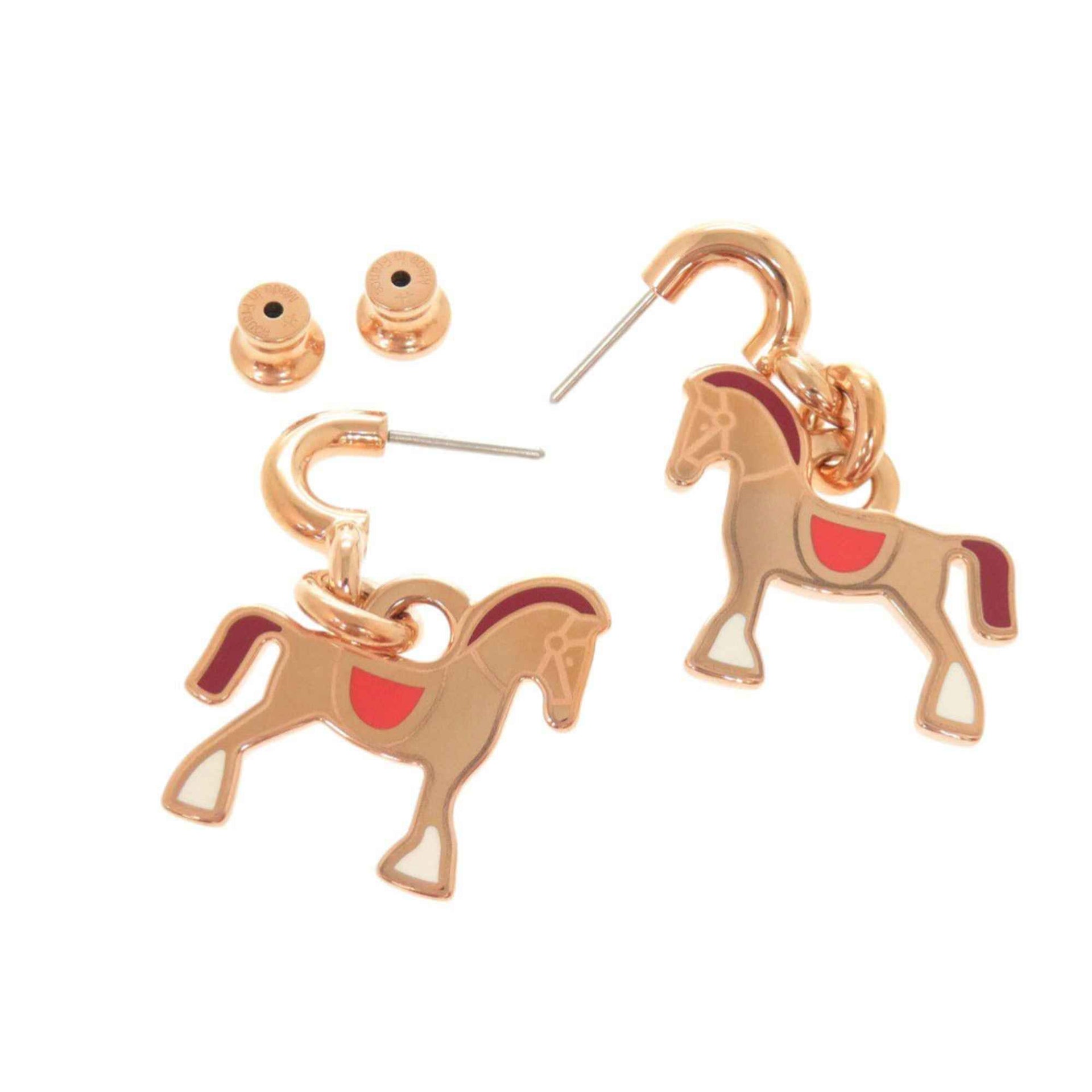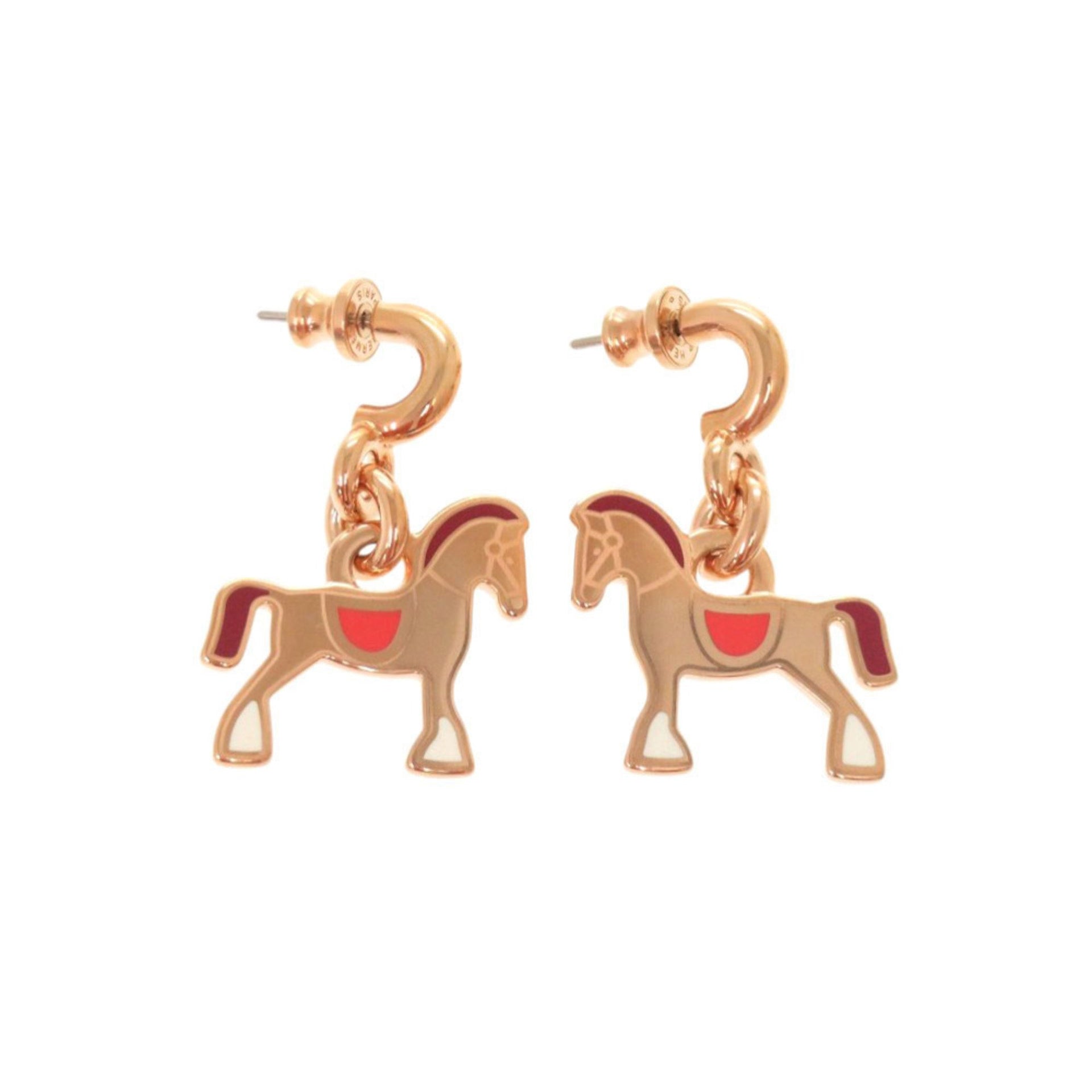 Unused Hermès Cheval Grande Parade lacquered metal and rose gold earrings 1297 HERMES