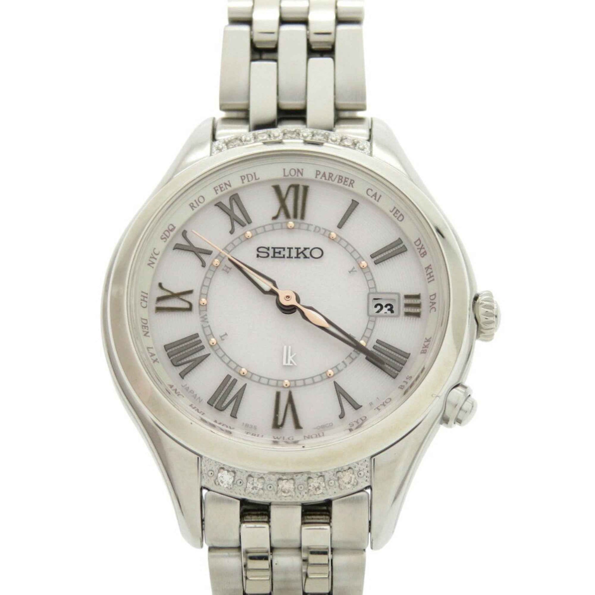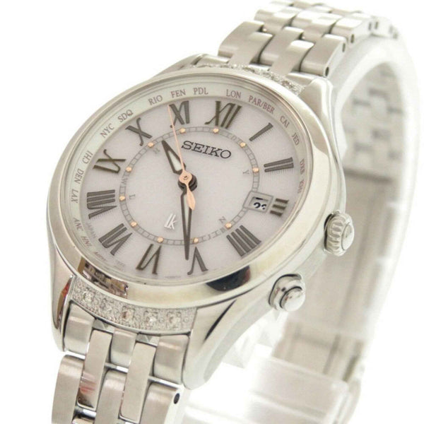 Unused Seiko Lucia SSVV053 SS Mocha Pink Solar Radio Wristwatch Silver 0041SEIKO