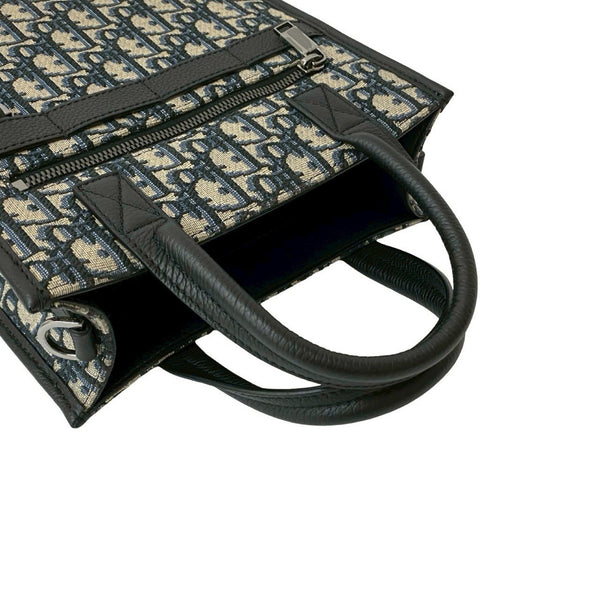 Unused, stored Christian Dior North South Oblique Leather and Canvas 2-Way Handbag/Shoulder Bag, Navy, 71204
