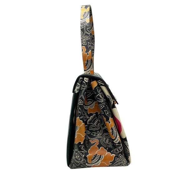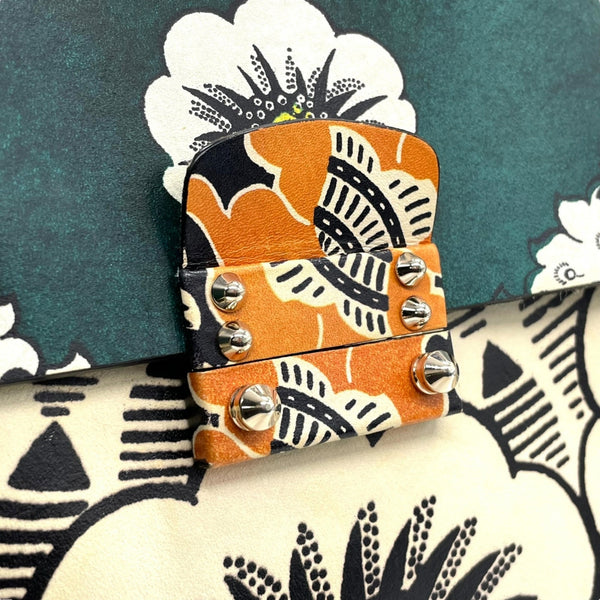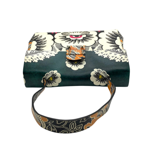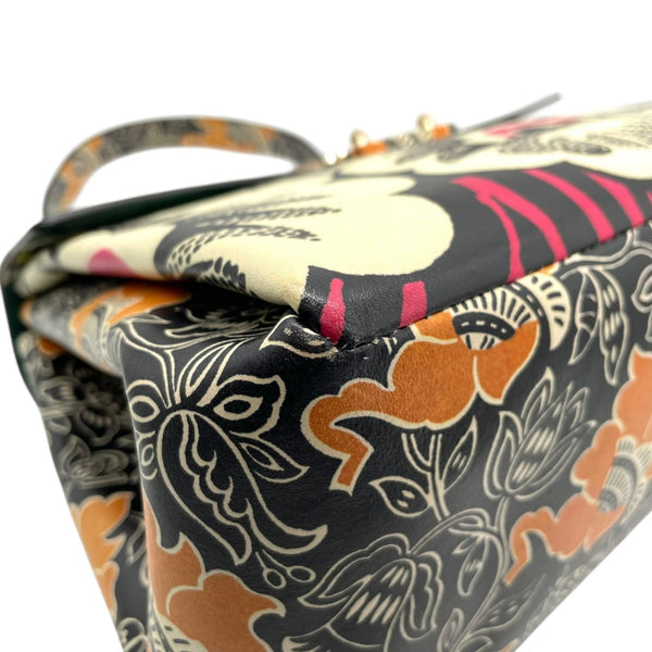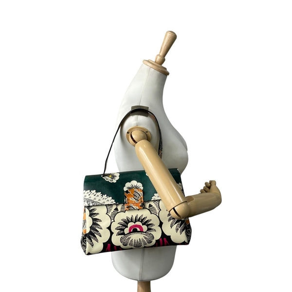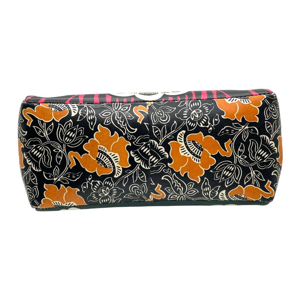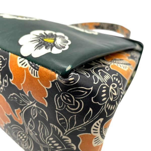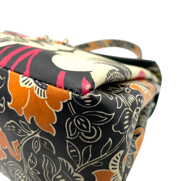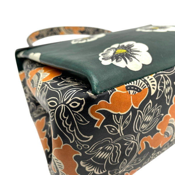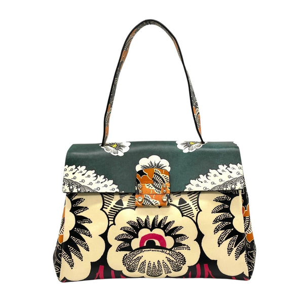 VALENTINO GARAVANI Floral Print Maim Handbag with Single Handle, Green and Multicolor Leather, Silver Hardware, Women\'s Size D