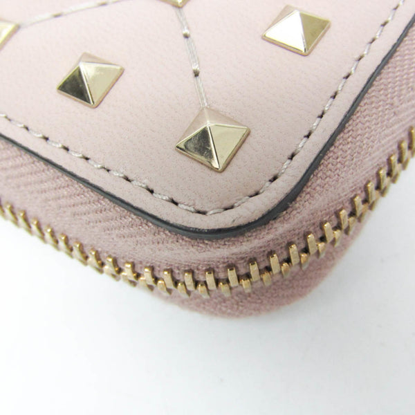 Valentino Garavani Rockstud Spike NW2P0P00 Women\'s Calfskin Long Wallet (bi-fold) Pink Beige