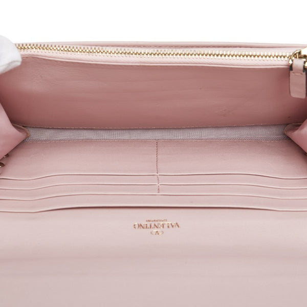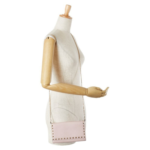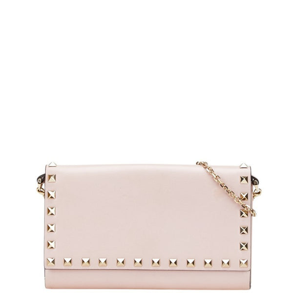 Valentino Rockstud Chain Wallet Shoulder Bag in Pink Leather for Women